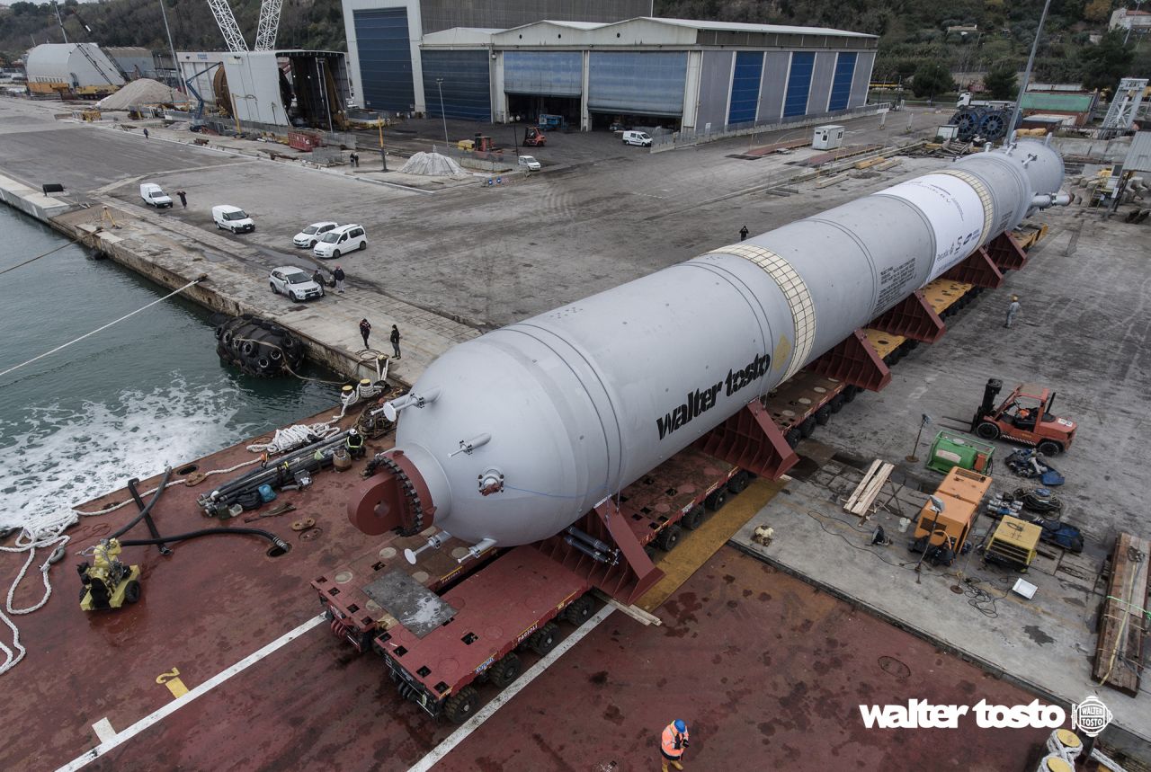Il merito va alla società produttrice italiana, la Walter Tosto, che ha fatto sapere che si tratta di due apparecchi del peso di oltre 2.000 tonnellate per circa 60 metri di lunghezza e 6 metri di diametro ciascuno. “La realizzazione di questi componenti ha definito un nuovo limite tecnologico per il settore della caldareria mondiale” spiega l’azienda produttrice.
