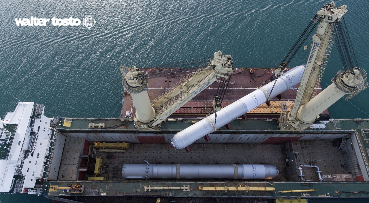 Secondo quanto appreso da SHIPPING ITALY l’operazione di trasporto project cargo è stata condotta dalla Walter Tosto direttamente, con il supporto della società di navigazione olandese Jumbo Maritime, ma senza ausilio di uno spedizioniere specializzato. Dalla terra ferma i reattori sono prima stati imbarcati su na chiatta e poi trasbordati a bordo della nave che li trasporterà in Asia.