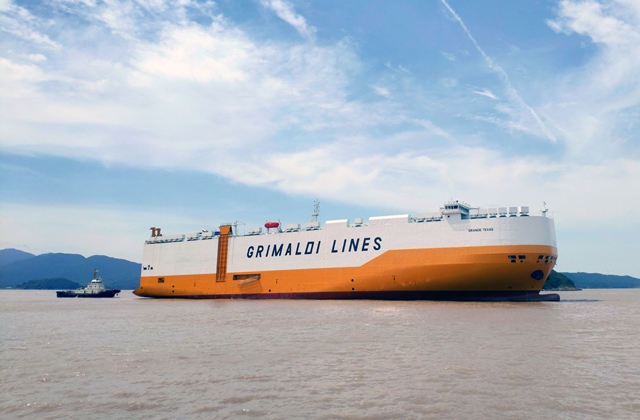 È una Pure Car & Truck Carrier (Pctc) la seconda nuova nave a fare il suo ingresso nella flotta Grimaldi in un anno che si preannuncia particolarmente vivace. Questa mattina il grupo armatoriale partenopeo ha infatti preso in consegna la Grande Texas, sesta di una serie di sette unità car carrier commissionate al cantiere cinese Yangfan di Zhoushan. Lunga 199,9 metri e larga 36,45 metri, la nuova costruzione ha una stazza lorda di 65.255 tonnellate e una velocità di crociera di 19 nodi. La nave, che batte bandiera italiana, è tra le unità Pctc più grandi sul mercato: può infatti trasportare circa 7.600 Ceu (Car equivalent unit) o in alternativa 5.400 metri lineari di merce rotabile e 2.737 Ceu.