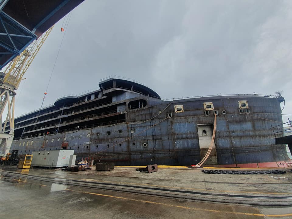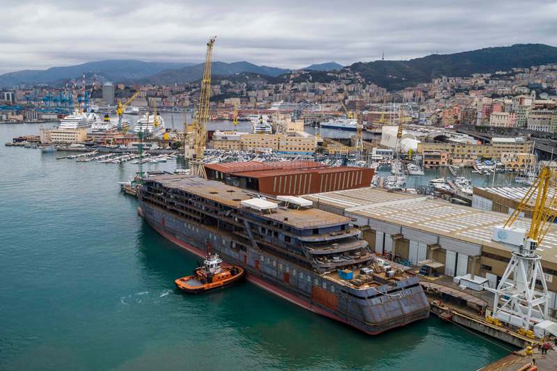 Lo scafo, con le sovrastrutture realizzate fino al ponte 9 e dotato già di motori, generatori e dei principali equipaggiamenti della sala macchine, è stato costruito presso il cantiere Cimar a San Giorgio di Nogaro e ha navigato per 1.200 miglia prima di raggiungere il capoluogo ligure. I lavori di allestimento dureranno quasi otto mesi e la consegna della nave è fissata per l’1 dicembre prossimo.