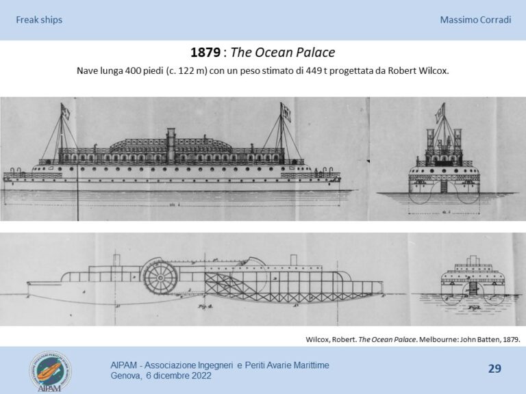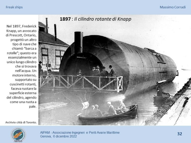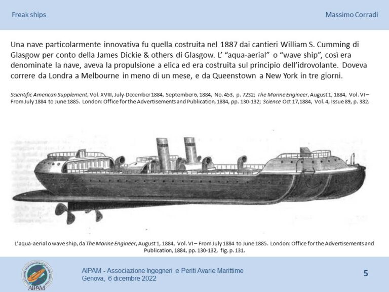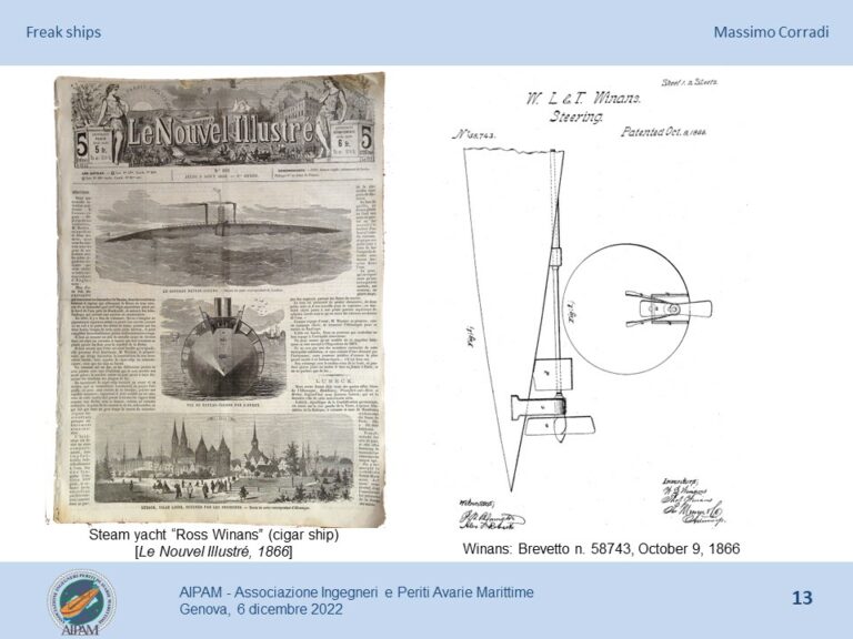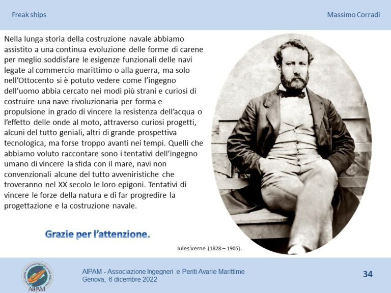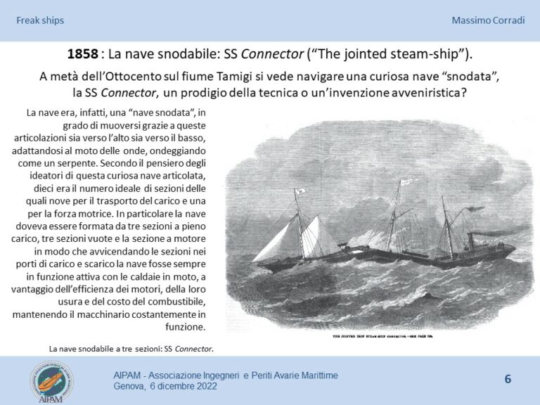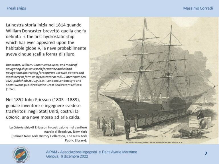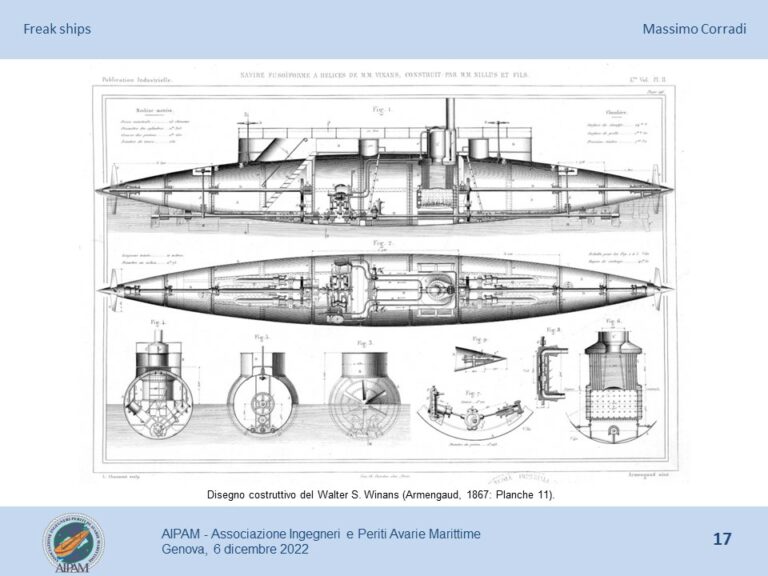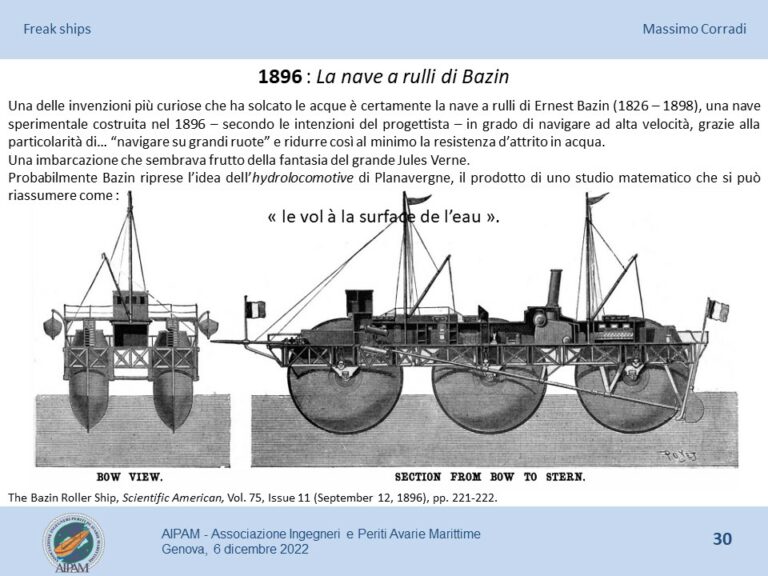 Il compito di intrattenere gli ospiti della serata è stato affidato al prof. Massimo Corradi, architetto e professore associato di Storia delle scienze e delle tecniche presso l’Università di Genova, con una presentazione intitolata “Freak ships – Il secolo dei sognatori: invenzioni curiose nelle costruzioni navali del XIX secolo”.