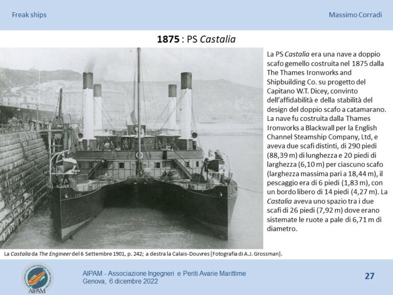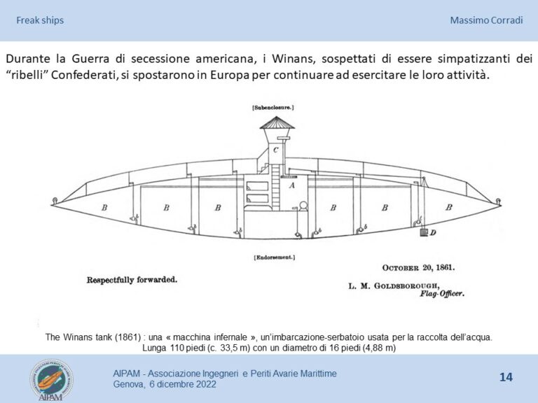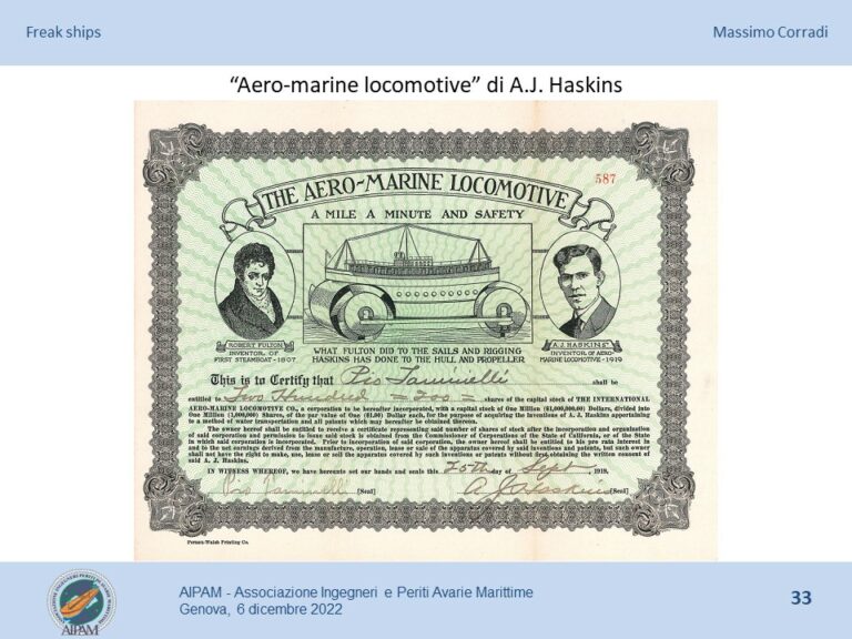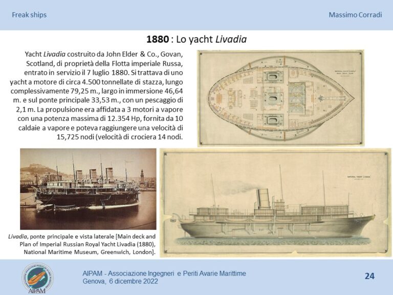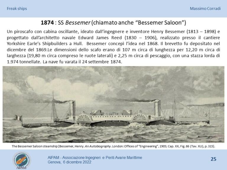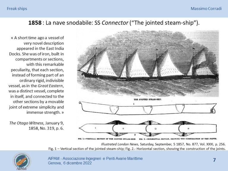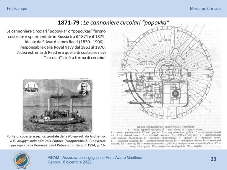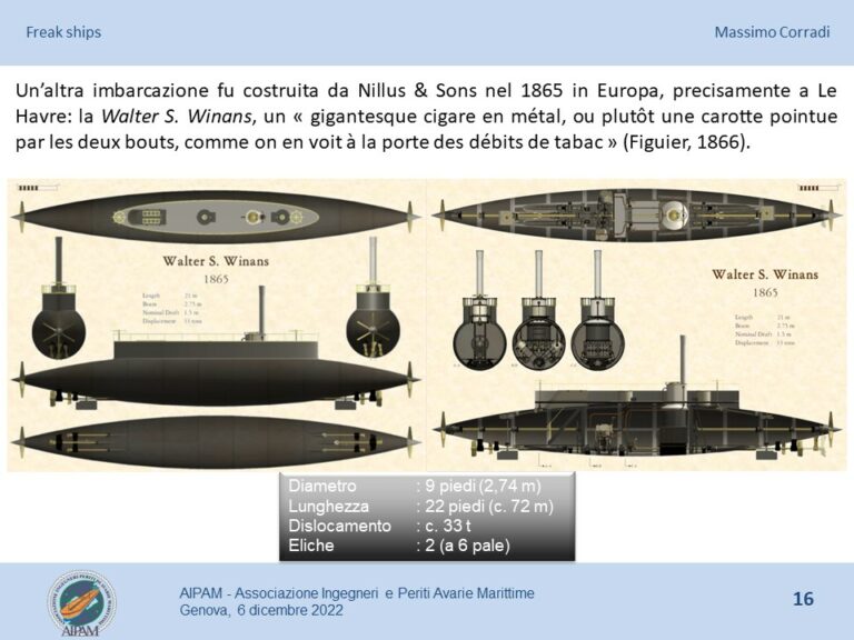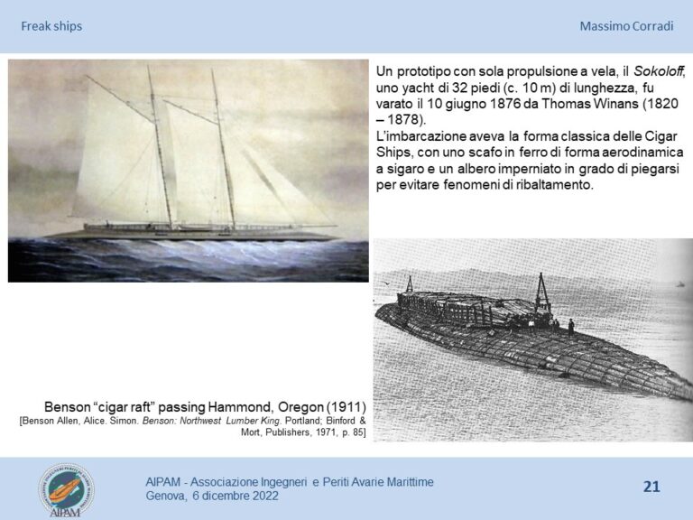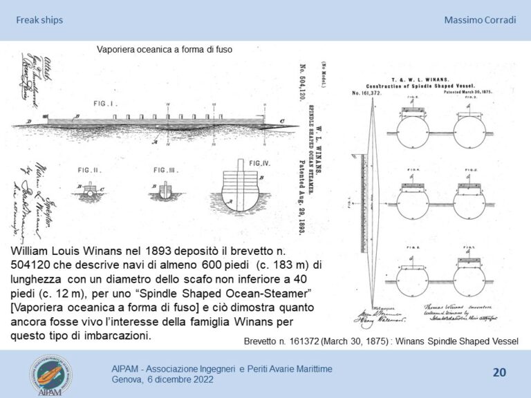 Il compito di intrattenere gli ospiti della serata è stato affidato al prof. Massimo Corradi, architetto e professore associato di Storia delle scienze e delle tecniche presso l’Università di Genova, con una presentazione intitolata “Freak ships – Il secolo dei sognatori: invenzioni curiose nelle costruzioni navali del XIX secolo”.