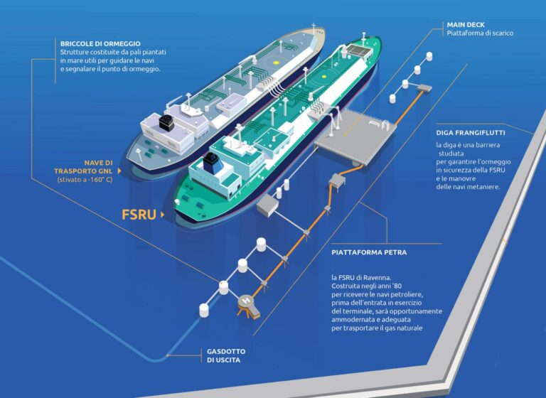 “Rcm costruzioni conferma la propria presenza sul territorio ravennate aggiudicandosi i lavori per la realizzazione della diga frangiflutti ideata per proteggere dalle mareggiate la piattaforma alla quale ormeggerà la nave rigassificatrice della Snam (BW Singapore, lunga 293 metri e larga 43) e le metaniere che trasporteranno il Gnl” ha fatto sapere la società di costruzioni italiana.