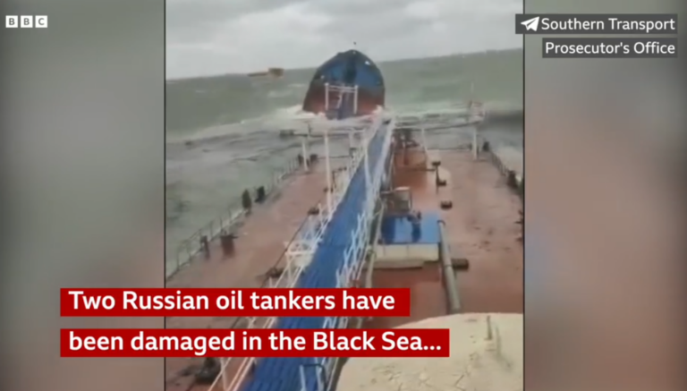 Due navi cisterna sono state colpite da una tempesta nel Mar Nero: entrambe sono state gravemente danneggiate; la prua di una di esse è stata strappata via da un’onda.