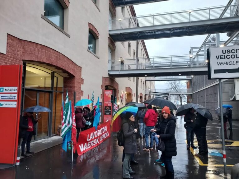 La protesta sindacale per il licenziamento di quattro lavoratori di Maersk Italia presso la sede di Genova entra nel vivo.
