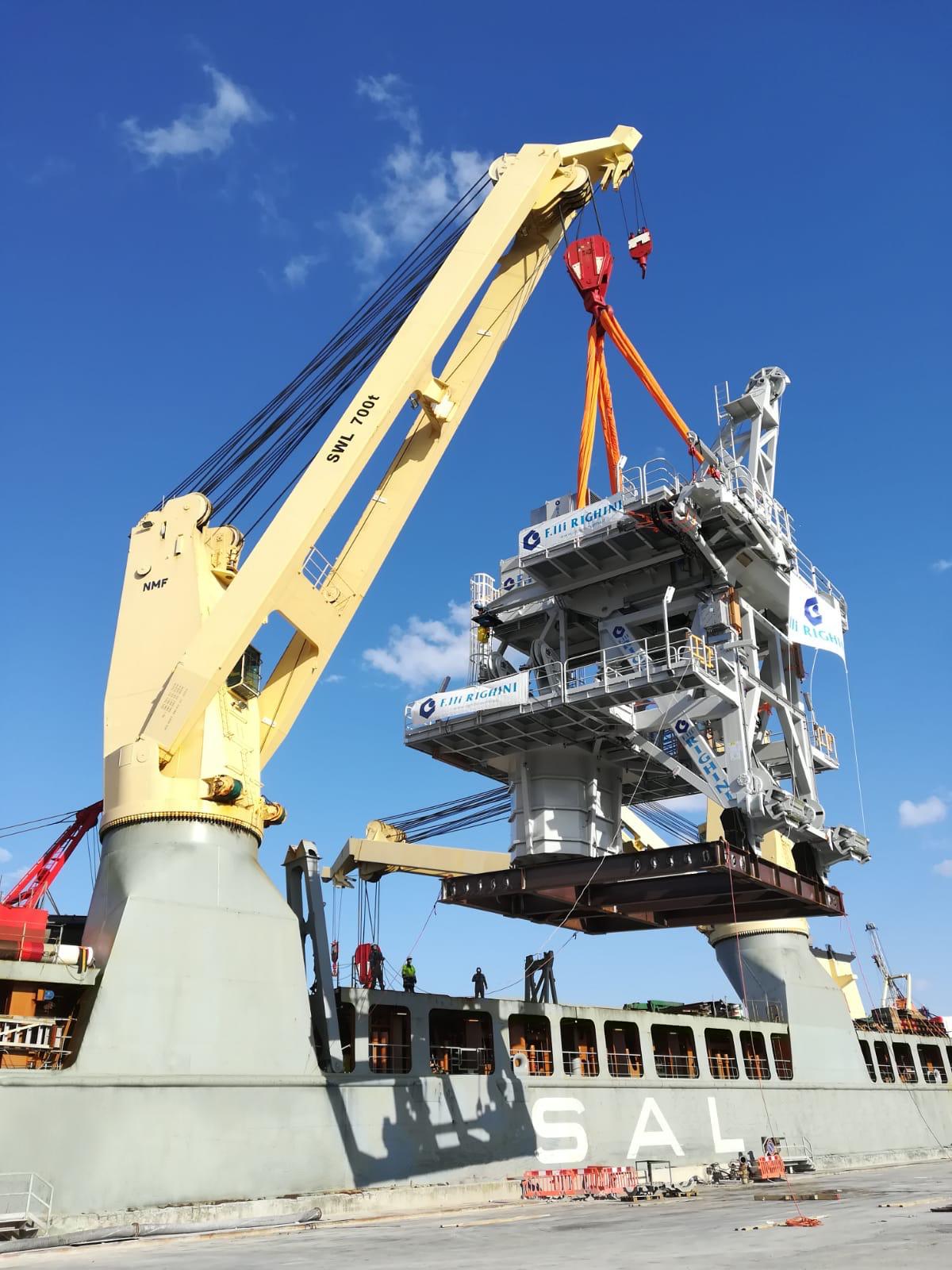 Il carico sollevato dalla banchina e imbarcato sulla nave Frauke aveva un peso di 260 tonnellate ed è stato completato con successo. Grande soddisfazione è stata espressa dalle varie aziende coinvolte (Sal, F.lli Righini ed Energean) per il delicato momento per l’Italia in cui questo lavoro è stato condotto.  La nave nel frattempo è già partita con destinazione Singapore.