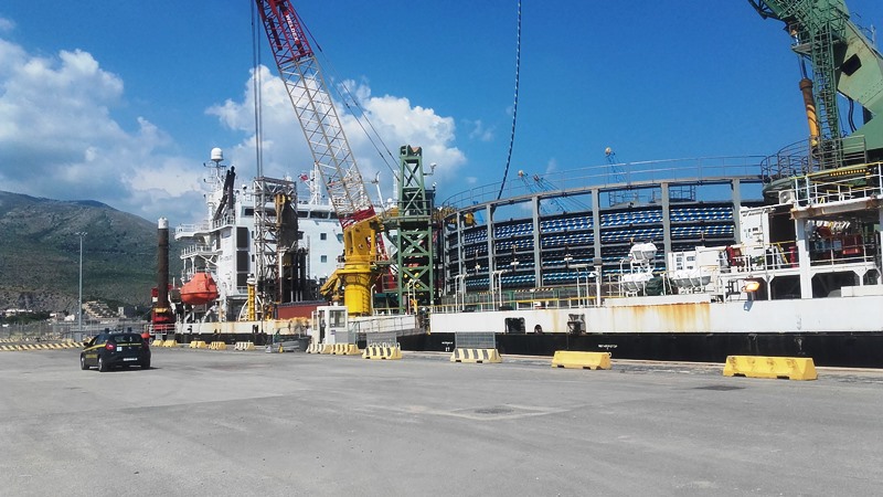Questo primo cavo sbarcato nel porto di Gaeta, della lunghezza complessiva di ben 130 km per circa 7.000 tonnellate di peso, sarà poi nuovamente imbarcato e portato a destinazione sempre e solo via mare senza alcun impatto sulla viabilità del territorio.