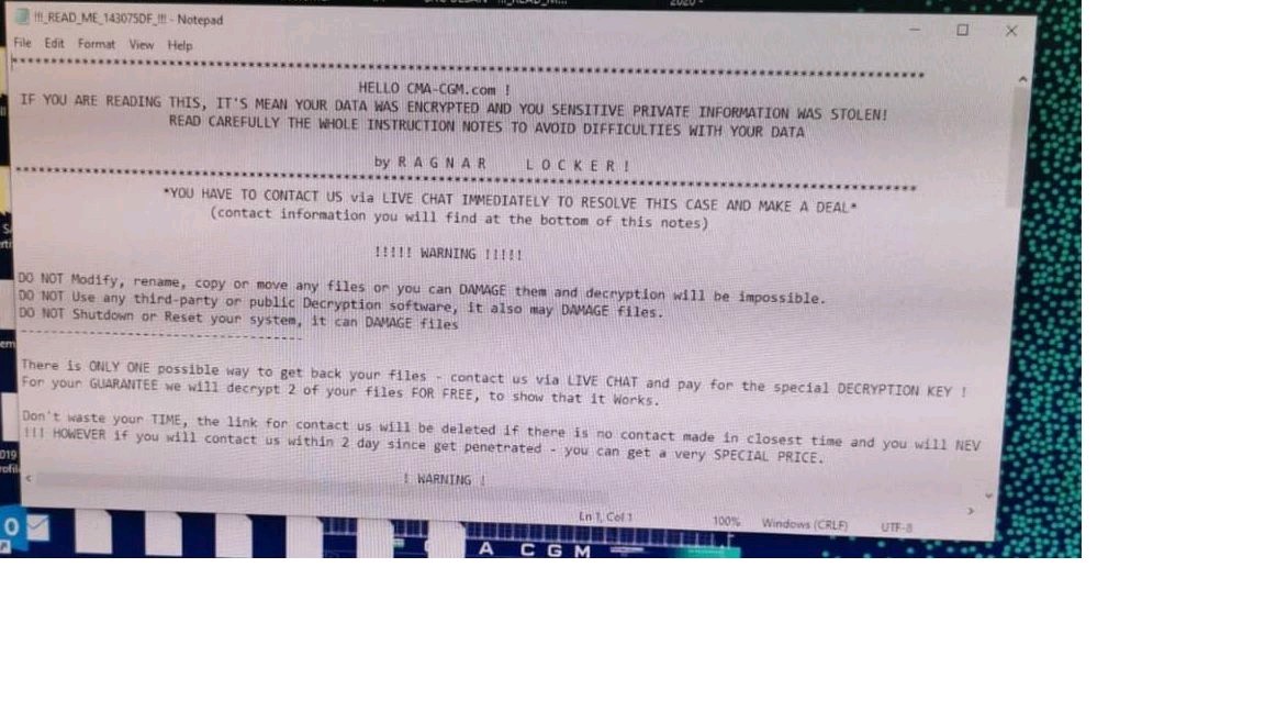 Secondo quanto riporta Lloyd’s List l’attacco sarebbe avvenuto con un ransomware Ragnar Locker e al gruppo francese sarebbe stato detto di mettersi in contatto entro due giorni con gli autori via live chat e pagare il riscatto richiesto per ottenere la chiave in grado di riaprire il sistema informatico.