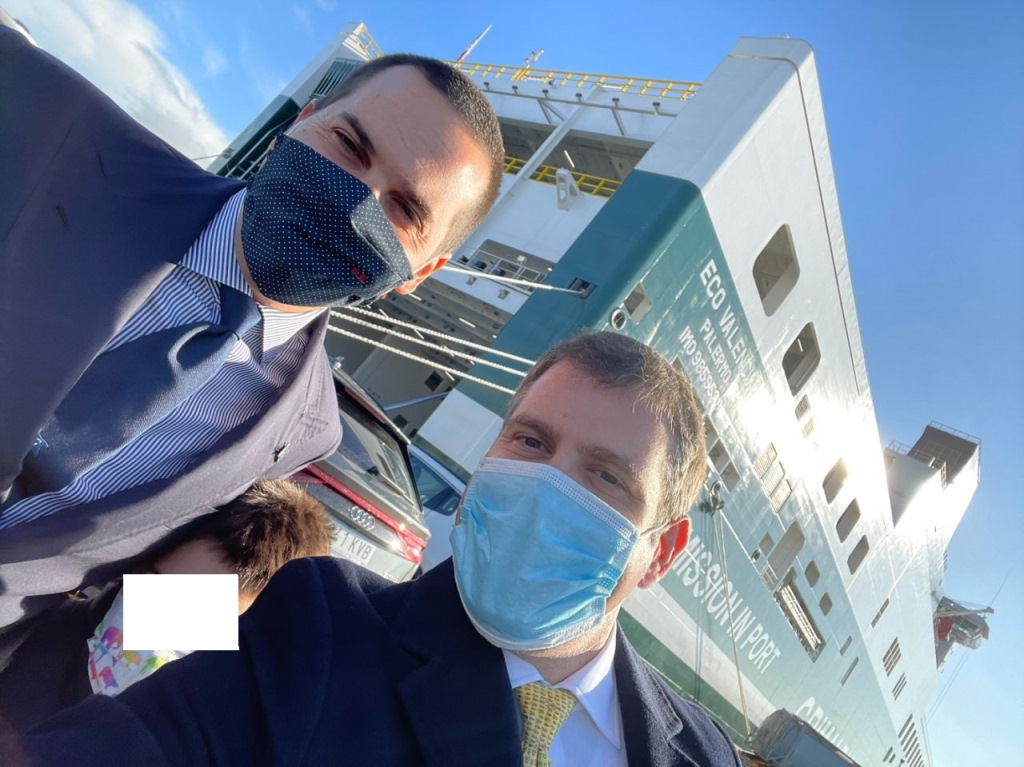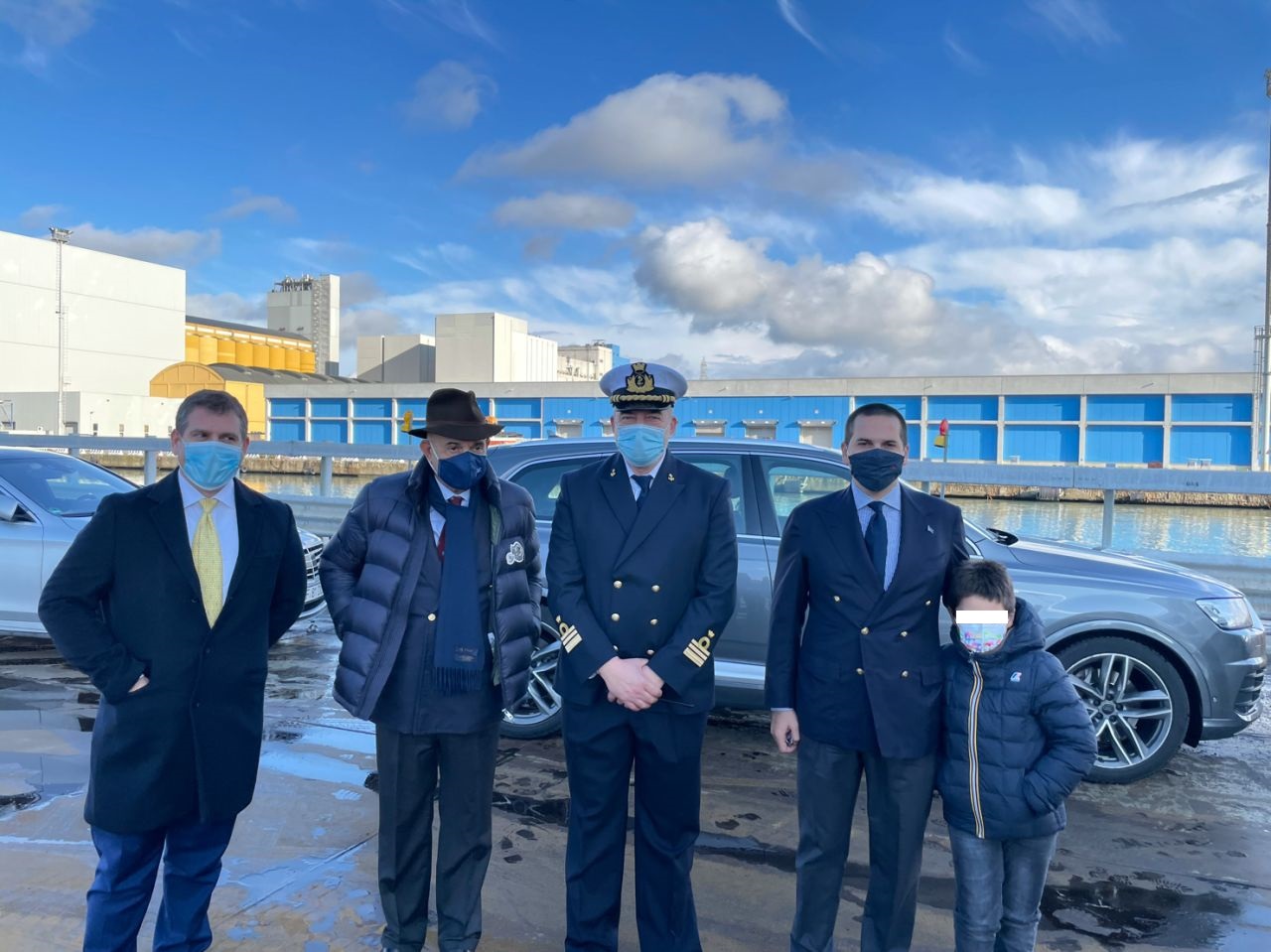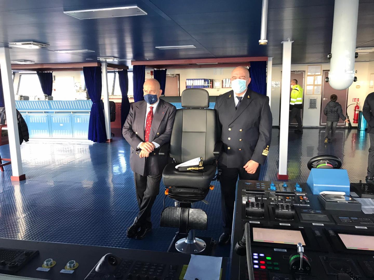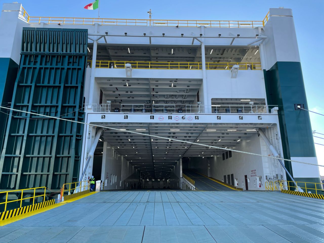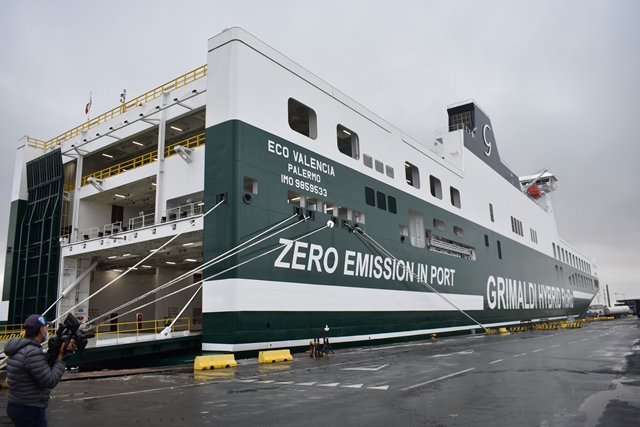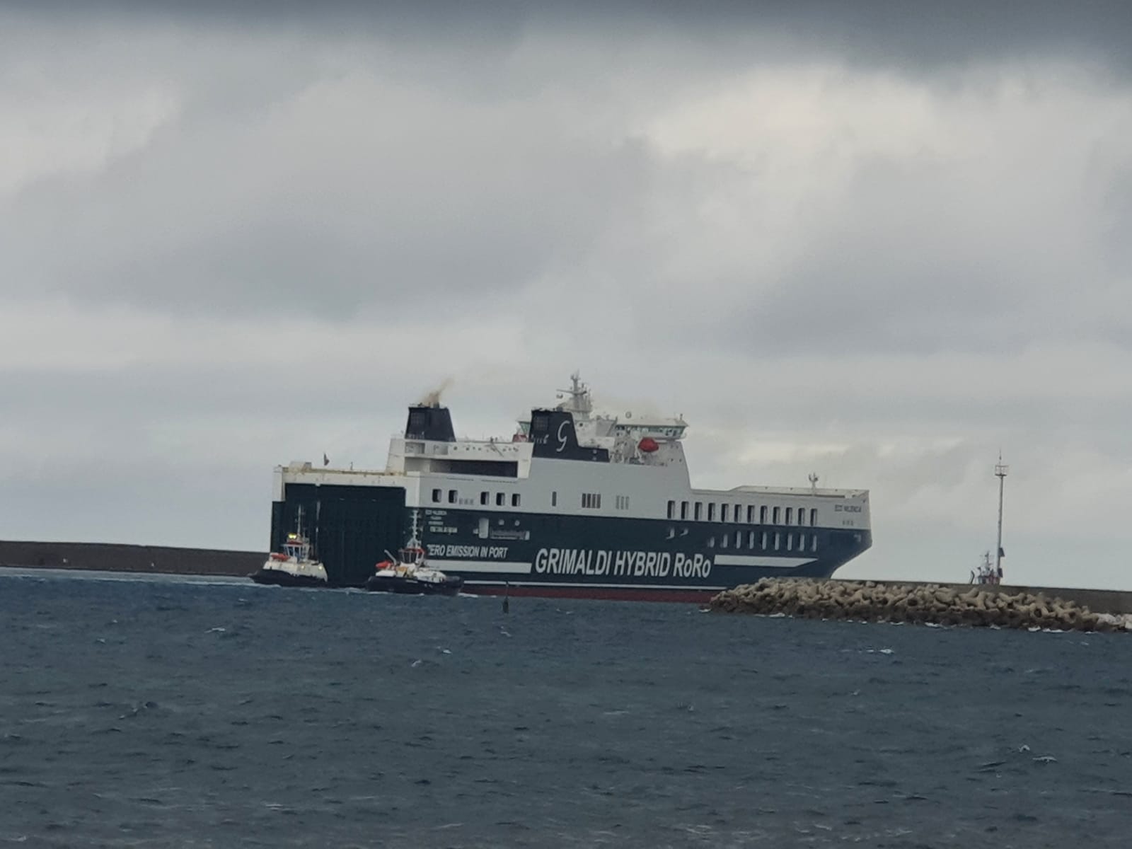 Ad attenderla in banchina c’erano Emanuele Grimaldi e il figlio Guido, vertici del Gruppo Grimaldi di Napoli e della controllata Grimaldi Euromed, accompagnati da diversi partner (in primis Domenico de Rosa, amministratore delegato di Smet) e autorità locali fra cui rappresentanti della locale Capitaneria di porto.