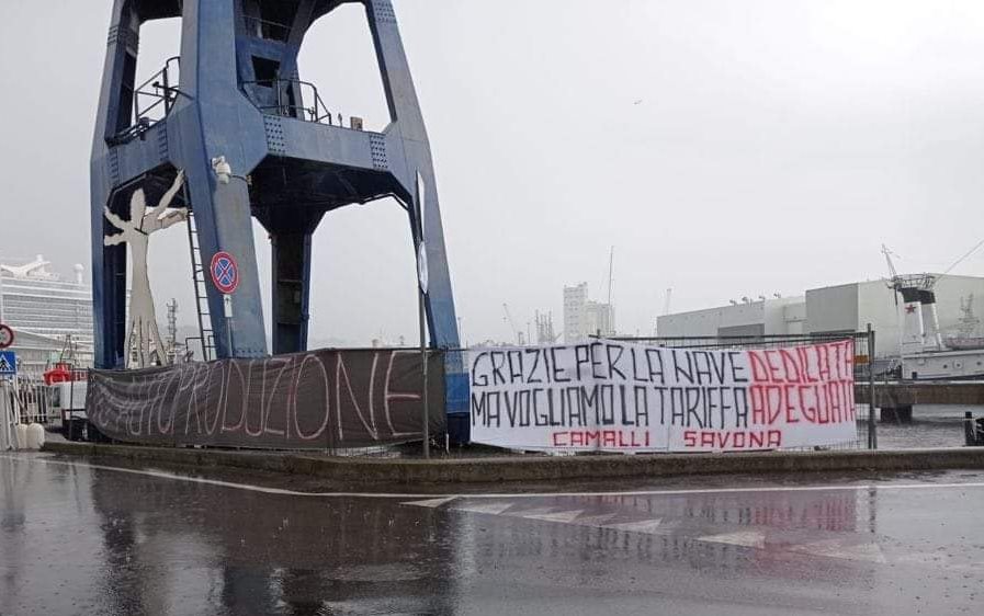 Agli occhi degli ospiti che hanno preso parte alla cerimonia di battesimo della nave non è sfuggito uno striscione dei portuali savonesi nel quale si leggeva: “Grazie per la nave dedicata ma vogliamo la tariffa adeguata – No autoproduzione”. Nel porto di Savona il Gruppo Grimaldi opera sulle proprie navi in quasi totale autoproduzione e per questo ancora nel recente passato i rappresentanti dei lavoratori hanno protestato per il blocco della contrattazione del contratto collettivo e proprio per l’autonoma gestione delle operazioni di rizzaggio e derizzaggio dei carichi a bordo.