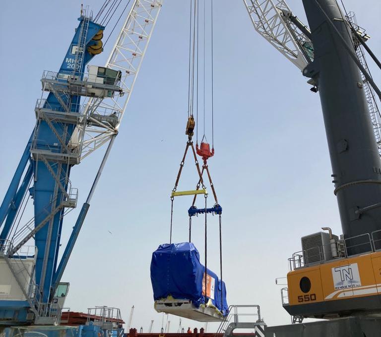 Terminal Nord, impresa portuale del Gruppo Sapir attiva nel porto di Ravenna, ha eseguito con le proprie gru lo sbarco di tre generatori da 184 tonnellate ciascuno destinati al vicino stabilimento Marcegaglia.