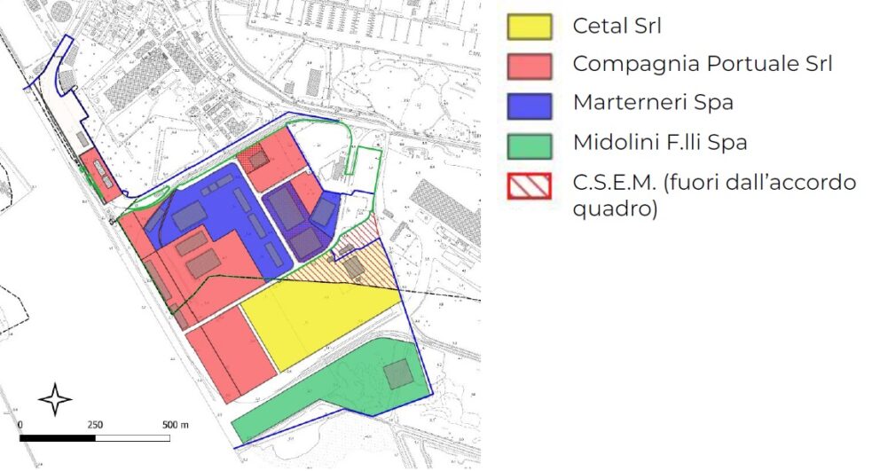 “Gli operatori – ha spiegato la nota – avranno 30 giorni di tempo dalla firma dell’accordo per presentare i propri progetti di fattibilità tecnico economica, i piani d’impresa, i modelli Sid ed i rilievi celerimetrici, al fine di formalizzare gli atti di concessione/locazione/diritto di superficie relativi a ciascuna area, rispettivamente di 95.800 mq (Cetal), 197.800 mq (Cpm), 120.135 mq (MarterNeri) e 94.000 mq (Midolini). Il layout generale delle concessioni è il risultato di un percorso condiviso di ottimizzazione dell’utilizzo delle aree portuali. Allo stesso tempo rappresenta la base per una razionalizzazione della viabilità stradale e del layout ferroviario, al fine di aumentare l’intermodalità ferroviaria anche attraverso mirati interventi sulle infrastrutture. In futuro, con il processo di demanializzazione delle aree attualmente ancora patrimoniali, vi saranno ulteriori benefici per gli operatori”.