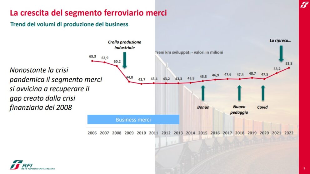 “Siamo impegnati in un piano straordinario di investimenti grazie al Pnrr, ma non solo. Stiamo lavorando per collegare la rete in modo più significativo con i porti. Abbiamo avviato il progetto Easyrailfreight che si propone di favorire la promozione e lo sviluppo dei servizi di logistica ferroviaria, in coerenza con gli obiettivi dell’Ue connessi alla decarbonizzazione dei trasporti” ha spiegato Christian Colaneri, direttore commerciale di Rfi. “Tale scopo – ha aggiunto – verrà perseguito tramite la realizzazione di un sistema informativo per gli attori della logistica per favorire l’incontro tra domanda e offerta, agevolare l’acquisizione dei servizi integrativi e consentire una vista completa dei servizi sul mercato”. Infine Colaneri, a proposito dell’imepgno di Rfi, ha ricordato che sono stati “avviato interventi di efficientamento dei raccordi ferroviari per 30 milioni di euro a valere sul Fondo Complementare al Pnrr. Nonostante la crisi pandemica il segmento merci si avvicina a recuperare il gap creato dalla crisi finanziaria del 2008”.