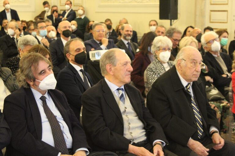 Genova – “Imprenditore dello shipping, intellettuale, progettista visionario. E ancora: genovese (perchè essere genvoese è un mestiere!), armatore, operatore logistico, poeta e scrittore”. Con queste definizioni Costanza Musso ha introdotto la serata di celebrazione degli ’84+60 anni’ dededicata al padre Bruno Musso, patron del Gruppo Grendi, nell’elegante Palazzo della Rovere in centro a Genova. Un appuntamento originariamente organizzato per metà dicembre ma rinviato causa Covid al quale ha voluto partecipare praticamente tutta la classe imprenditoriale dello shipping genovese e non solo a giudicare dai molti volti noti presenti in sala.