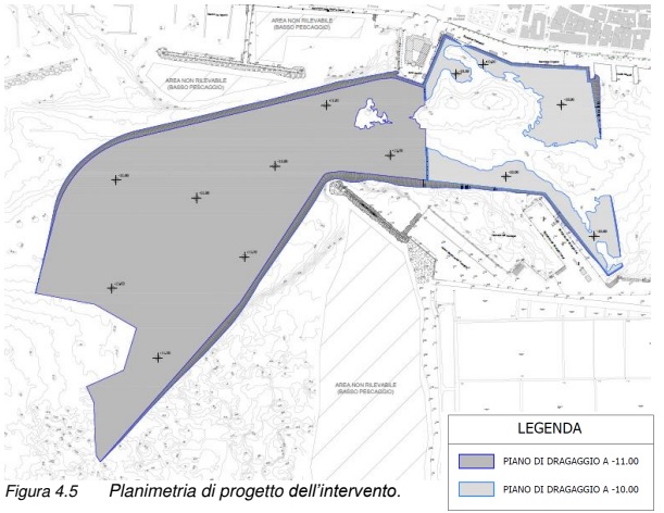 Rapidissimi i tempi previsti dal cronoprogramma, dopo l’approvazione del progetto esecutivo, avvenuta solo lo scorso 30 giugno. Il 22 agosto si apriranno le buste, dopodiché a settembre partiranno i lavori con 120 giorni per “realizzazione dell’area di cantiere, compresa la bonifica ordigni bellici, ricerca, disgaggio e salpamento trovanti, realizzazione vasche sedimentazione, impianto Sediment Washing ed ottenimento autorizzazione”. Poi 540 per “escavo subacqueo dei sedimenti e per quelli di classe A e B trasporto nel sito di immersione in mare e ciclo di trattamento e trasporto a discarica per quelli di classe C e D, nei successivi 540 giorni”, per arrivare a un totale – considerando anche pause da condizioni meteoavverse e periodi festivi – di 720 giorni.
