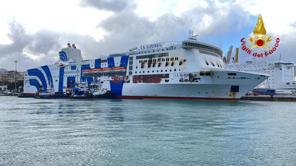 Domato l’incendio su La Superba per la quale Gnv potrebbe dichiarare la perdita totale