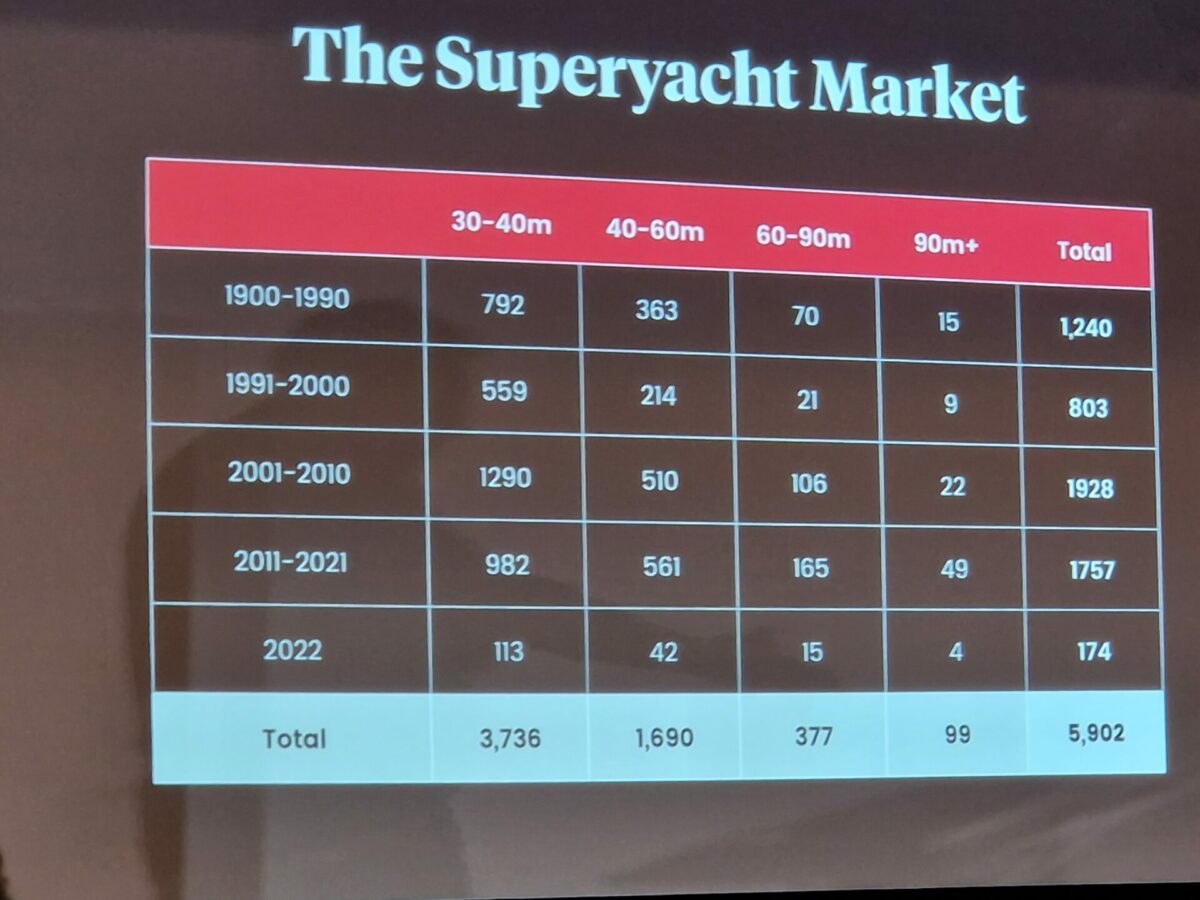 Delle 174 new entry sul mercato nel 2022, 113 sono state navi da diporto di lunghezza compresa fra 30 e 40 metri, 42 tra 40 e 60 metri, 15 tra 60 e 90 metri e 4 oltre i 90 metri.