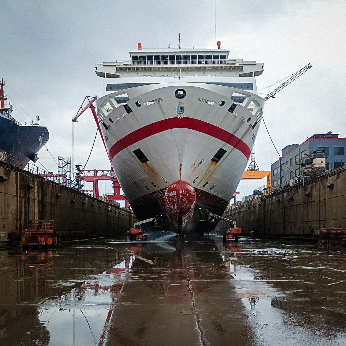 Fra i molti interventi portati a termine durante i quattro mesi di sosta in cantiere figurano l’installazione di scrubber, di impianto di trattamento acque di zavorra, elica e pitture siliconiche