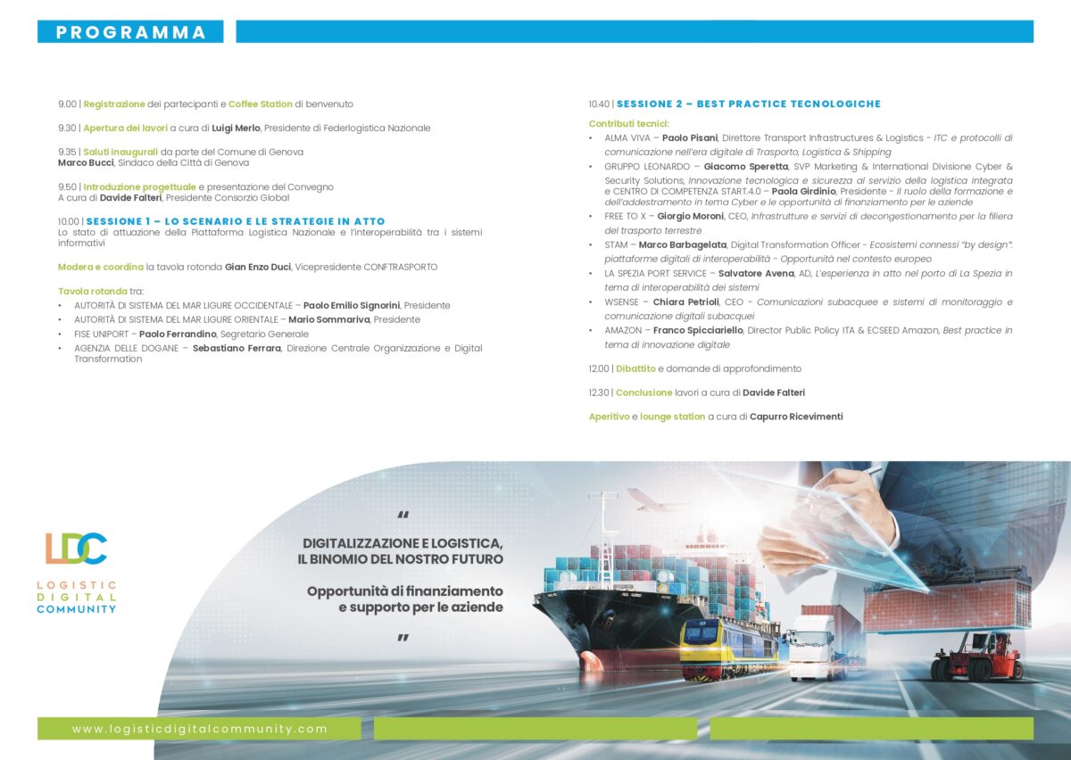 lunedì 12 giugno, a Genova, dalla Logistic Digital Community, la prima comunità virtuale, nata nel capoluogo ligure nell’ottobre del 2021, su iniziativa di Federlogistica e di Conftrasporto-