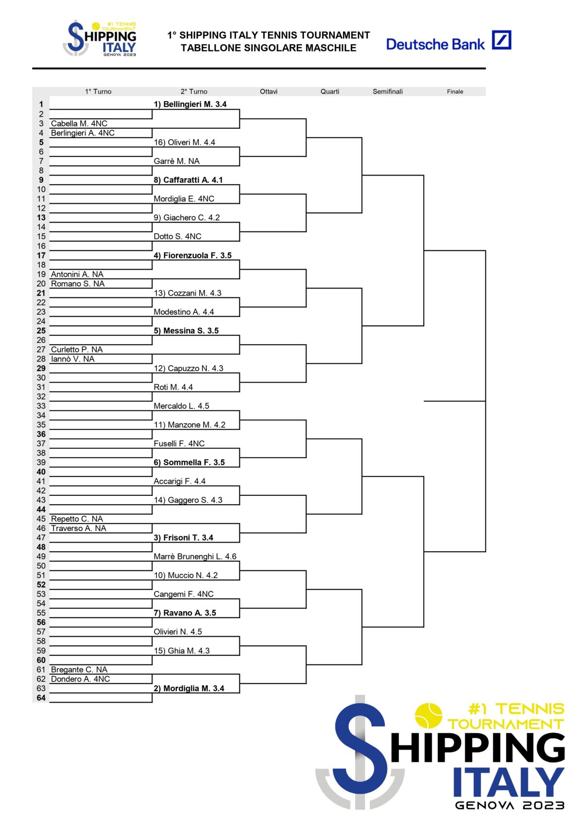 A poco più di una settimana di distanza dall’inizio del 1° SHIPPING ITALY Tennis Tournament (main sponsor Deutsche Bank) sono ora online i tabelloni dei due tornei di singolare maschile e singolare femminile che si disputeranno rispettivamente dal 31 agosto e dal 4 settembre a Genova presso i campi della Nuova Valletta – Parco dello Sport nel parco di Valletta Cambiaso.