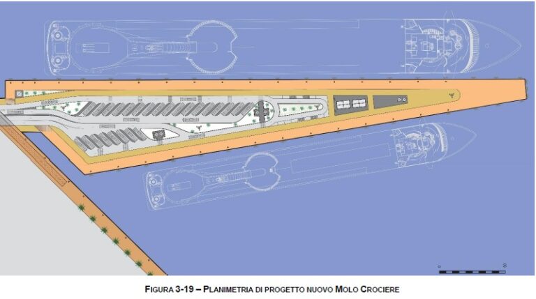 Il corrispettivo sarà leggermente più oneroso per l’Adsp (47,9 milioni di euro contro 47,3), mentre da un punto di vista tecnico non è stato chiarito se e quanti cassoni la cordata neoaggiudicataria realizzerà in loco e quanti a Genova. I lavori dureranno due anni. L’opera di nuova infrastrutturazione marittima per il potenziamento dell’offerta crocieristica è ricompresa nel progetto più generale di riqualificazione e conversione d’uso, in chiave turistico-ricreativa, del waterfront della Spezia. Il nuovo molo crociere, avente forma trapezia, è orientato in direzione Nord – Sud, lungo una linea mediana che forma un angolo di circa 50° con la calata Paita; esso consentirà l’accosto di due navi da crociera di ultima generazione, lungo i due lati di banchina che si sviluppano a levante per 393 metri e a ponente per 339 metri.