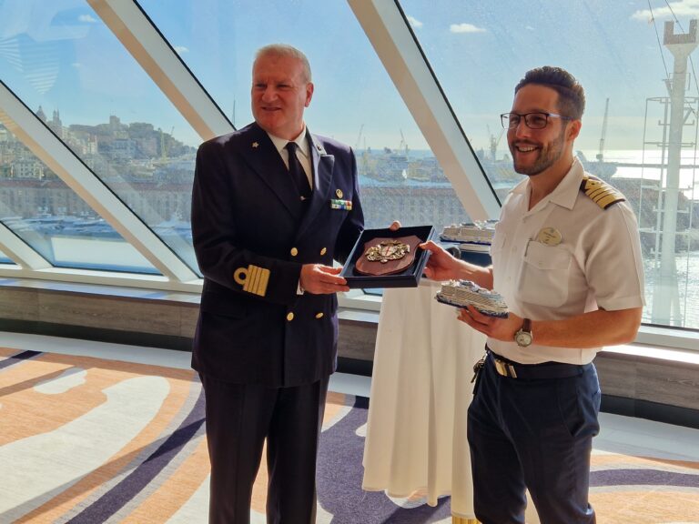 Genova – Il comandante Kevin Daniel Bellido Ramos e il comandante in seconda Daniele Farace della nuovissima nave da crociera Ncl Prima sono entusiasti di Genova come approdo e come attrazione turistica e la locale port authority, Stazioni Marittime di Genova e il Comune auspicano che la compagnia del gruppo Norwegian Cruise Line Holdings incrementi le toccate sotto la Lanterna.