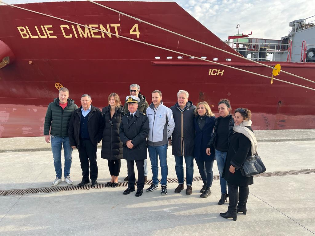 La nave cementiera Blue Ciment 4 ha inaugurato l’infarstruttura rimessa a nuovo con due milioni di euro presso il Canale Industriale Brentella