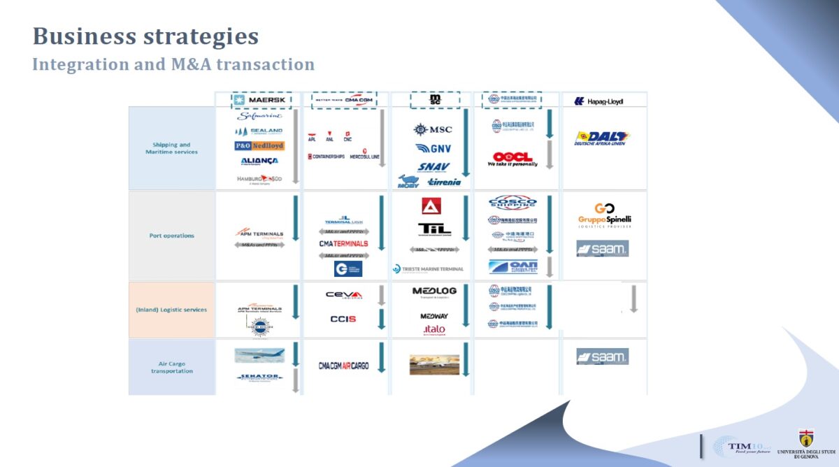 Considerando le attuali condizioni della domanda e dell’offerta di trasporto di container via mare, è plausibile ipotizzare che l’evoluzione futura del settore sarà influenzata in modo significativo dal perseguimento da parte dei carrier nazionali e internazionali di strategie a livello business e corporate che consentano un allineamento del sistema d’offerta alle mutate richieste provenienti dai caricatori, ovvero: