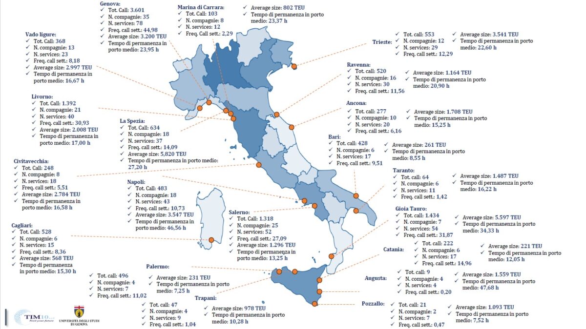 A livello di posizionamento competitivo su scala internazionale, i principali porti italiani, non senza difficoltà, sembrano riuscire a mantenere un ranking soddisfacente. I primi tre porti italiani per container throughput (Gioia Tauro, Genova e La Spezia) presentano un ranking Port Liner Connectivity Index (PLCI) superiore ai 40 punti, evidenziando un livello di servizio adeguato rispetto alle esigenze espresse attualmente dalla domanda.