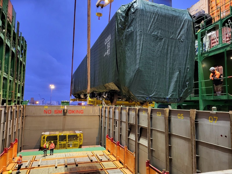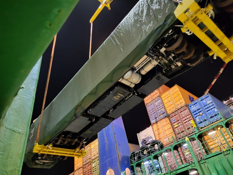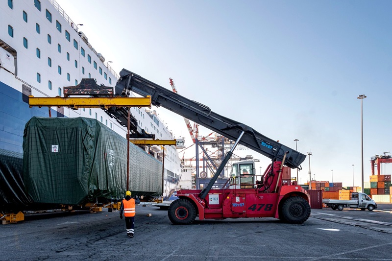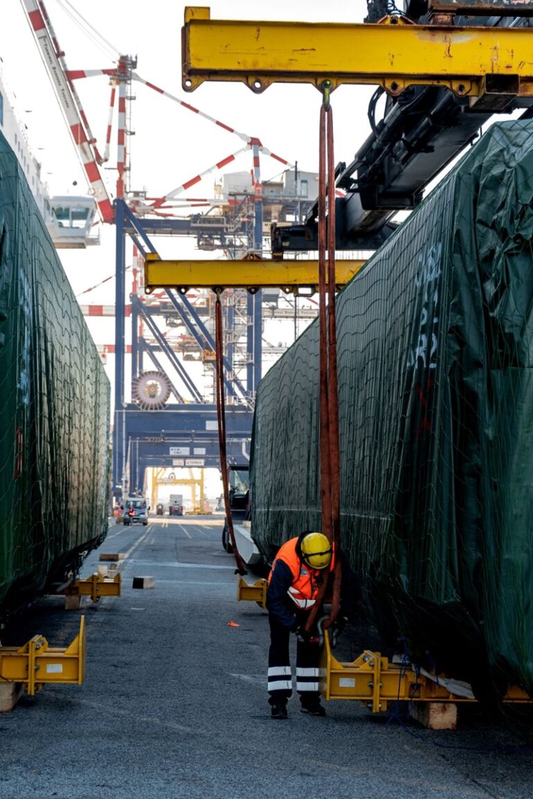 Il Terminal Darsena Toscana è tornato ad ospitare, lo scorso 13 febbraio, l’imbarco di alcuni vagoni destinati alla metropolitana di Lima, realizzati da Hitachi Rail Spa a Reggio Calabria, ognuno dei quali con lunghezza di 18 metri e un peso di 35 tonnellate.