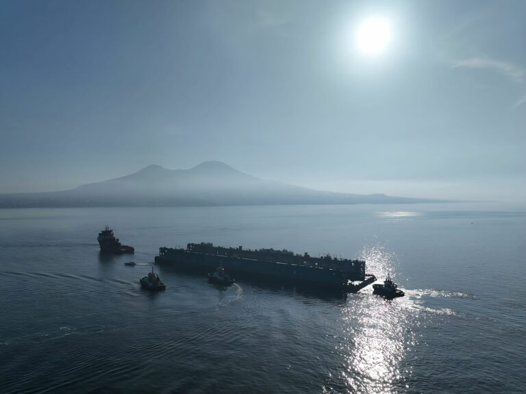 Arrivato in porto a Napoli il nuovo bacino di carenaggio da 230 metri