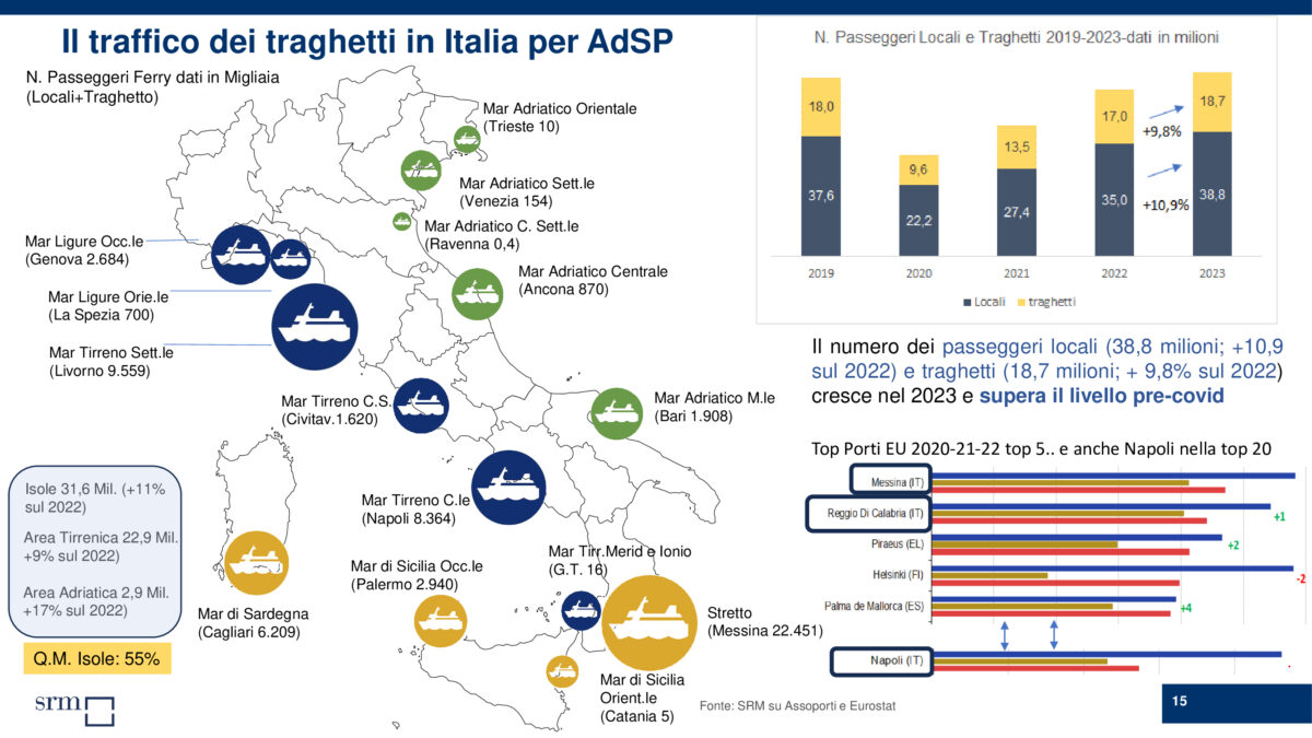 Napoli – Il traffico di ro-ro si sta facendo sempre più spazio nella portualità italiana, grazie a uno sviluppo intenso ma soprattutto diffuso sul territorio. Di questa tendenza ha parlato Olimpia Ferrara, responsabile del Maritime Observatory di Srm – Intesa Sanpaolo, nel corso della presentazione che ha aperto i lavori del 3° Business Meeting di SHIPPING ITALY dedicato al comparto dei traghetti, andato in scena a Napoli la scorsa settimana.