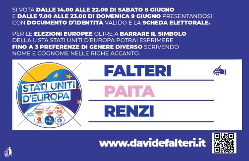 La lista Stati Uniti d’Europa è l’unica che crede davvero nell’importanza di un ruolo centrale dell’Italia in Europa.” – ci dice Falteri – “Ecco perché ho deciso di mettere la mia esperienza e le mie competenze al servizio di questa causa, in modo da poter vincere insieme la sfida che ogni giorno ci troviamo ad affrontare.