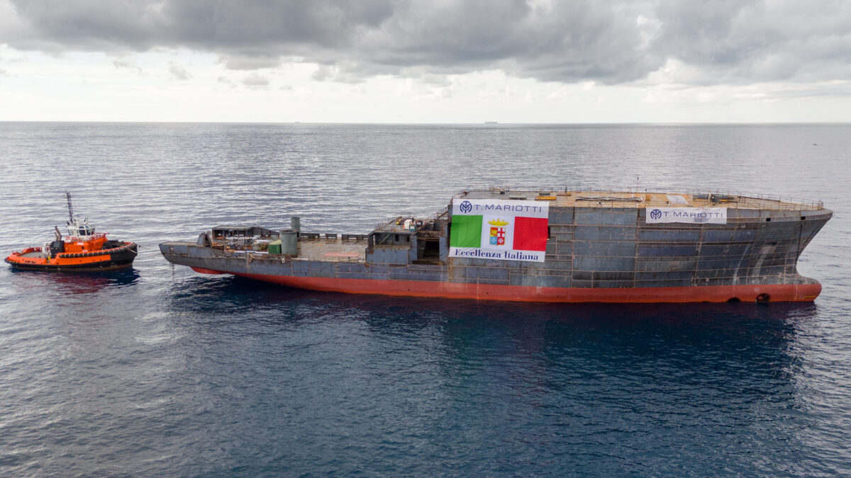 A renderlo noto è stato lo stesso cantiere spiegando che l’operazione di rimorchio è stata completata nei tempi previsti permettendo allo scafo di arrivare nella rada del porto di Genova dove, grazie alle maestranze del cantiere, agli ormeggiatori, ai rimorchiatori e ai barcaioli del porto, è stato sganciato dal rimorchiatore d’altura Sea Dream e agganciato ai rimorchiatori del porto, che lo hanno trainato fino alla banchina di destinazione. Il completamento delle strutture e degli allestimenti riprenderà al termine delle operazioni di messa in sicurezza dello scafo in banchina e del ripristino di tutti gli impianti provvisori necessari alle complesse attività di installazione, per cui il cantiere si è preventivamente organizzato.
