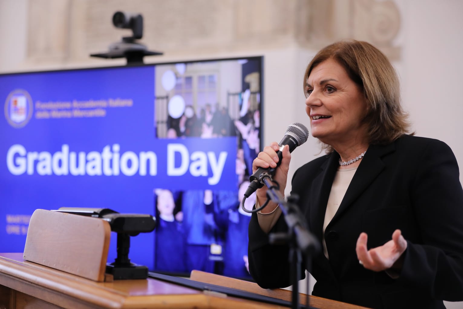 Il Graduation Day dell’Accademia Italiana della Marina Mercantile, fondazione Its più grande d’Italia per la formazione specializzata in ambito marittimo e logistico, si è tenuto nella Sala delle Compere di Palazzo San Giorgio alla presenza dei vertici della Marina Militare italiana, del Corpo delle Capitanerie di porto – Guardia Costiera, dei rappresentanti di Confitarma e Assarmatori, Centro Nato Sto-Cmre e Fincantieri.