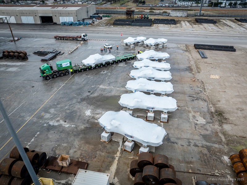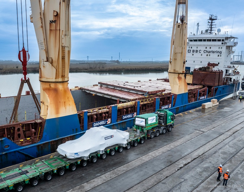 “Ci siamo seduti ad un tavolo e abbiamo disegnato la spedizione su misura” racconta a SHIPPING ITALY Massimiliano Zuliani, projects director di Z&C Logistica. Per spostare gli imponenti tanto quanto pesanti pezzi dell’impianto dallo stabilimento Danieli di Buttrio al porto di Porto Nogaro è stato necessario un mese di lavoro. Dopo essere state stoccate nell’area di retro-banchina del Terminal Porto Nogaro, le 10 ‘spalle’ dal peso medio di 160 tonnellate cadauna, tra martedì e mercoledì sono state trasportate sottobordo e imbarcate sulla nave BBC-Fuji. L’operazione è avvenuta sotto il coordinamento delle maestranze del Terminal Porto Nogaro e del project team di Z&C Logistica, coadiuvato dal chartering and operations manager Nadir Del Piccolo.