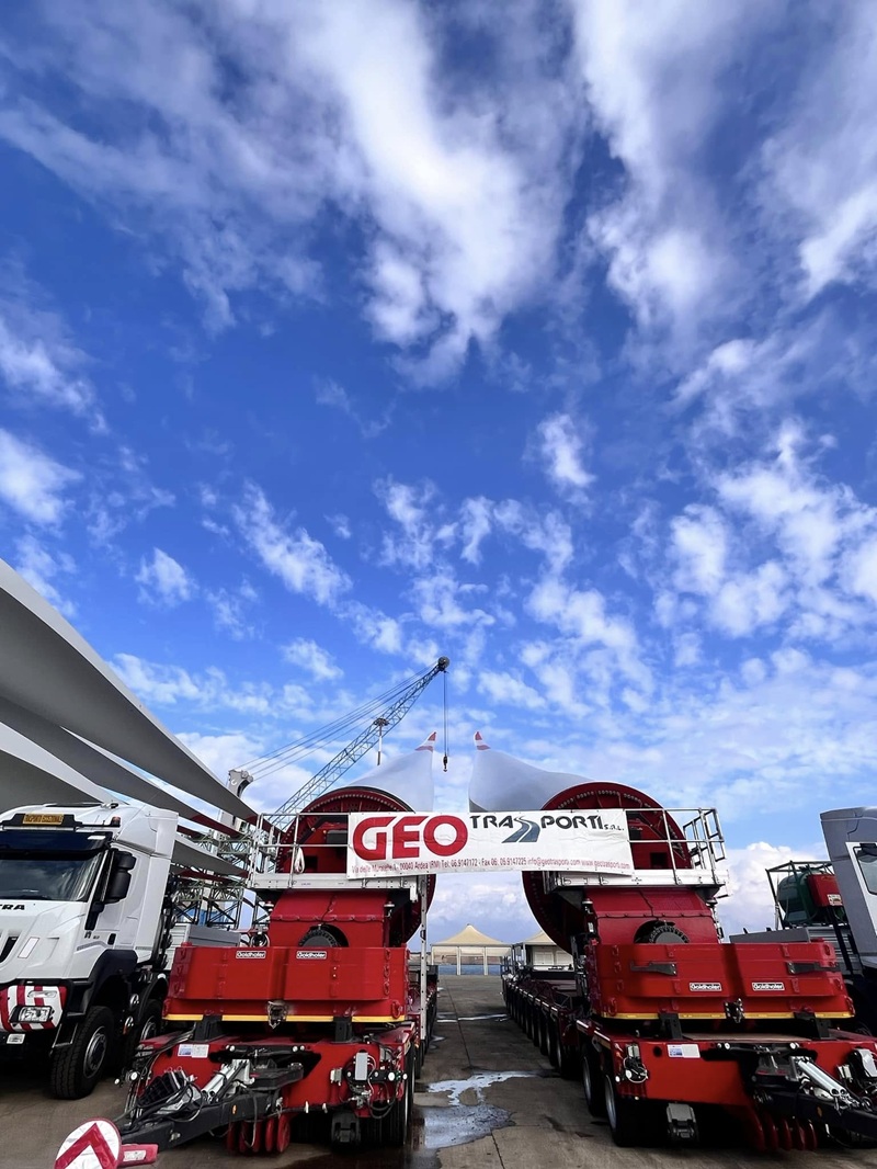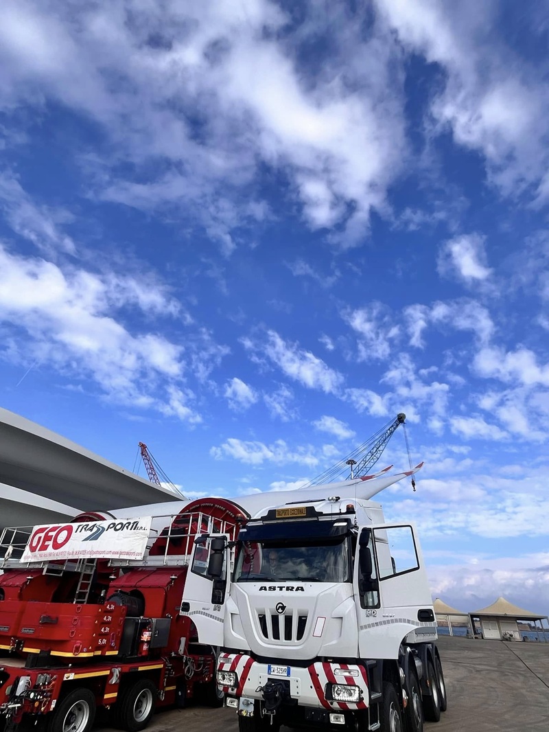 Più precisamente, spiega una nota della AdSP del Mar Adriatico Meridionale, il carico è stato composto da 27 pale, arrivate con la nave Tian Fu, e dalle torri, trasportate sempre via mare dalla Eems Dundee. Tutti i pezzi sono stati scaricati sul piazzale di Costa Morena Est. Le operazioni sono poi proseguite via terra, con il trasporto del carico su due camion Astra a formare un convoglio di 35 metri, oltre l’unità di traino. Come spiegato dalla port authority, i mezzi, costruiti a più assi, grazie ad alcune innovative tecnologie riescono a comunicare tra loro per distribuire in tempo reale la potenza del motore e adattarsi alle esigenze del percorso. L’imponente carovana è stata poi completata da un Blade Lifter Goldhofer, un sistema utilizzato per il trasporto e lo spostamento delle mega turbine eoliche composto da “un sollevatore idraulico avanzato che consente di alzare la lama del vento fino a circa 60°, per superare ostacoli lungo il percorso”, progettato “per mantenere il baricentro basso e ridurre il rischio di ribaltamento”.
