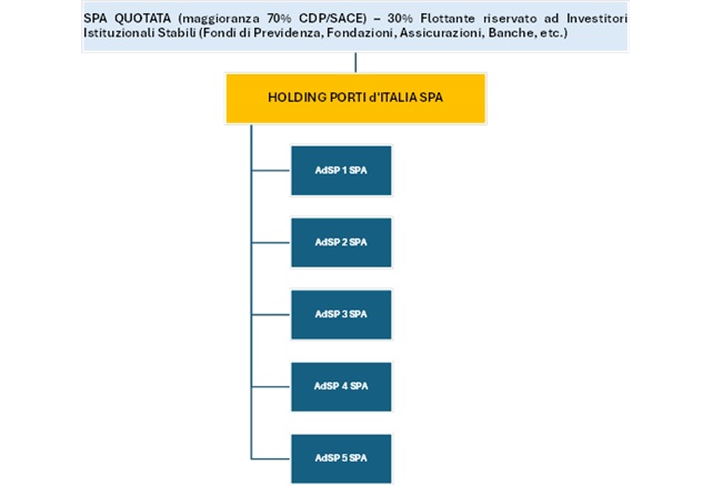 Personalmente continuo a pensare che in tal senso la strada migliore sia quella del modello giuridico Nord-Europeo del Semi-Landlord in cui il demanio continua ad essere pubblico e gestito da una serie di SpA (le ex AdSP) con ambiti piuttosto ampi (estesi alla logistica retro-portuale) con la maggioranza delle azioni detenute da una Holding SpA controllata da soggetti pubblici Istituzionali (ad es. Cdp, Sace) mentre la minoranza potrebbe essere collocata in borsa tra Investitori Istituzionali Italiani (Fondi Infrastrutturali, Enti di Previdenza, Fondazioni, Assicurazioni, Banche), la minoranza delle società controllate potrebbe rimanere appannaggio degli Enti Locali che avrebbero una rappresentanza limitata nella governance e potrebbero beneficiare della eventuale distribuzione di dividendi a valle.