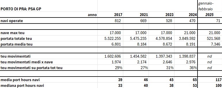 Al momento non ci sono posizioni ufficiali, ma i dati pubblici raccolti da Ships Information – Avvisatore marittimo del porto di Genova non lasciano spazio alla fantasia. In crescita da anni, in correlazione presumibilmente lineare con crescita della dimensione media e del carico medio delle navi, le port hours (tempo dall’arrivo in rada alla partenza dal porto) sono letteralmente esplose nei primi due mesi dell’anno. Su 70 navi arrivate a Pra’, per 36 ci sono volute più di 100 ore fra arrivo in rada e partenza e per 10 di queste si sono superate le 200 ore.