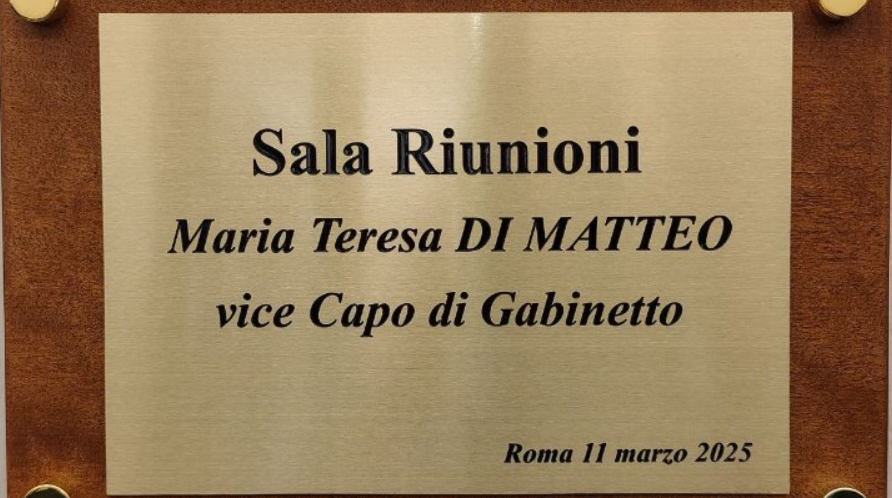 Presso la sede del ministero delle Infrastrutture e dei Trasporti a Roma ieri si è tenuta la cerimonia per l’intitolazione di una sala riunioni alla dottoressa Maria Teresa Di Matteo, già Capo Dipartimento per i trasporti e la navigazione e Vice Capo di Gabinetto, scomparsa prematuramente lo scorso 12 gennaio. La data coincide con la ricorrenza della sua prima assunzione avvenuta l’11 marzo 2014 come Vice Capo di Gabinetto.