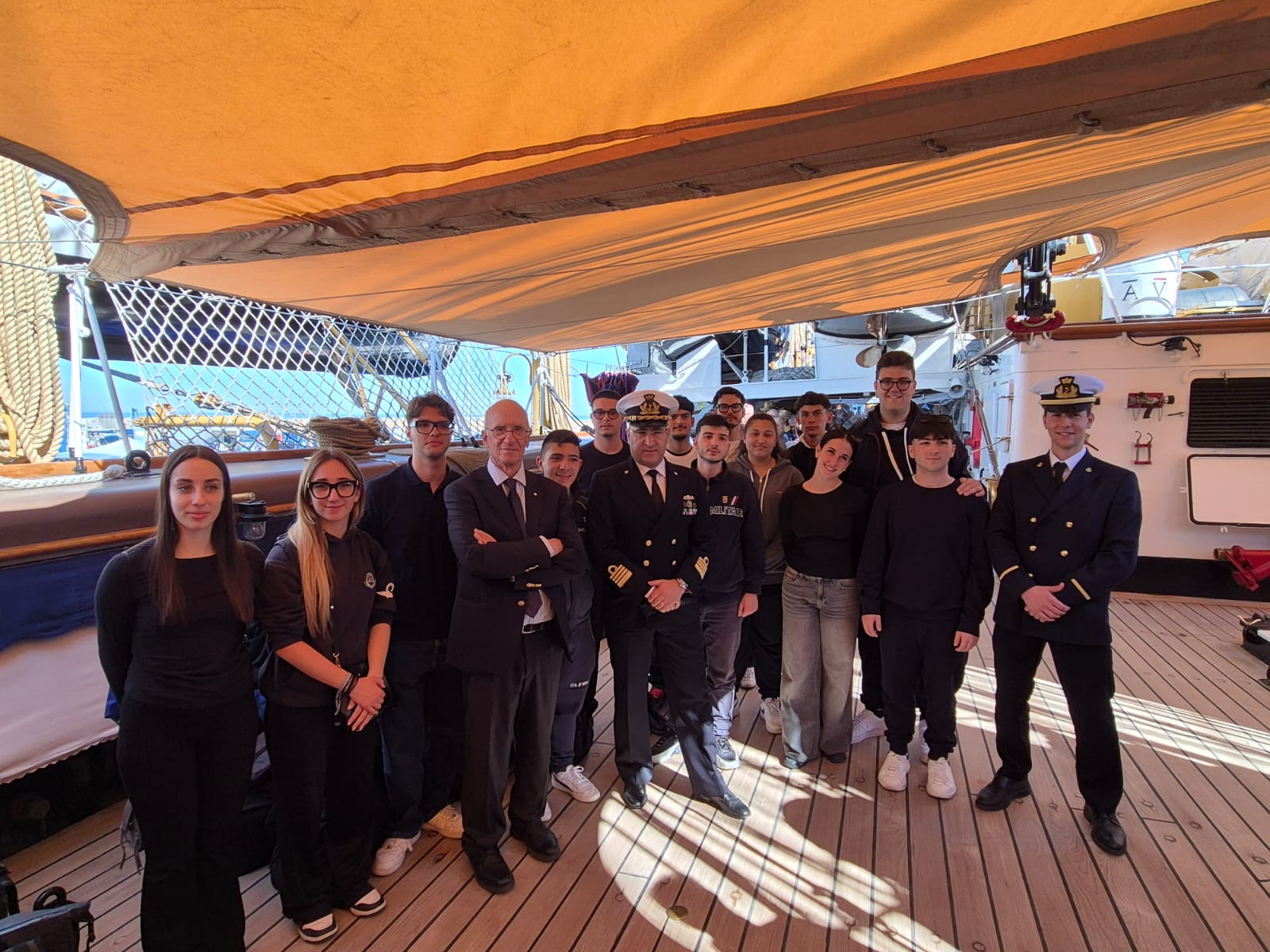 La missione è proseguita a bordo di Nave Scuola Amerigo Vespucci con un incontro sulla formazione marittima, promosso dall’Accademia della Marina Mercantile Italiana cui hanno partecipato quindici studenti dei nautici italiani in un’esperienza formativa a bordo, promossa dal Propeller con la Marina Militare.