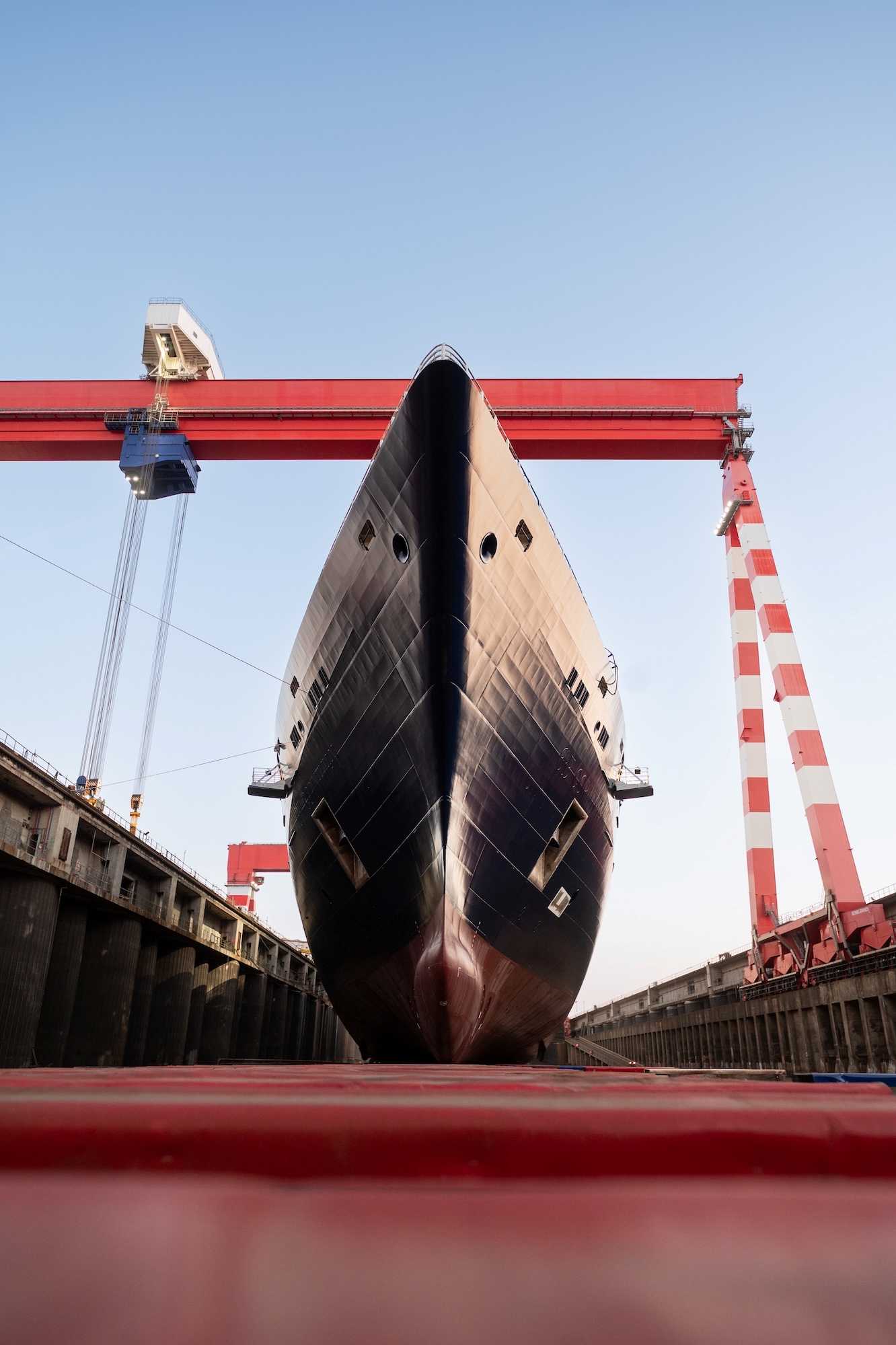 Dopo circa quattro mesi e mezzo di assemblaggio, spiega in una nota Orient Express, l’imponente scafo, navigando per la prima volta, ha lasciato il bacino di costruzione per essere trasferito a quello di allestimento. L’operazione, che ha visto il riempimento del bacino fino a permettere il galleggiamento dello scafo, è stata seguita dal rimorchio dell’imbarcazione attraverso la chiusa Joubert e il bacino di Penhoët, fino all’ormeggio finale al molo.