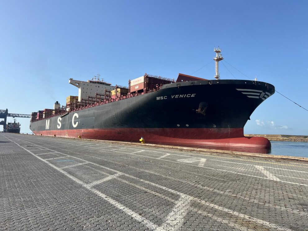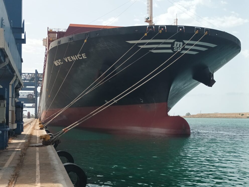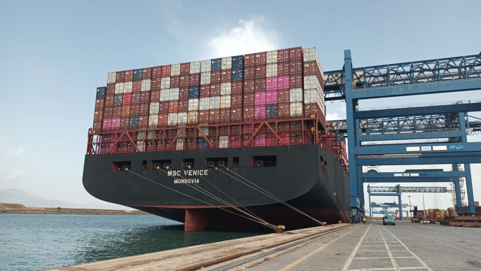 Approdata al terminal Mito di Cagliari la Msc Venice da 16.000 Teu
