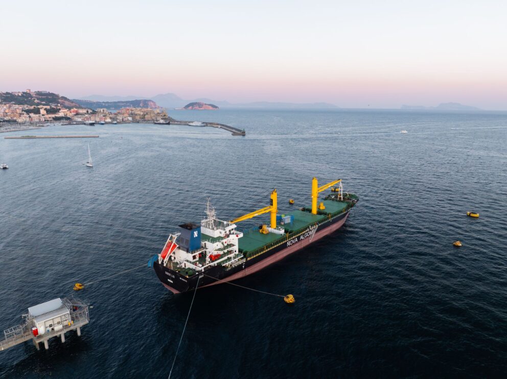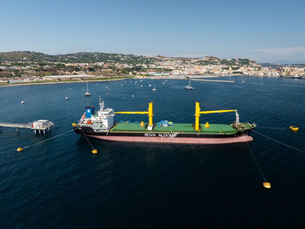 La nave Sider Liu ha imbarcato cavi sottomarini destinati all’Olanda a Pozzuoli, nella baia dove Giovanni Romeo ha iniziato la sua avventura armatoriale