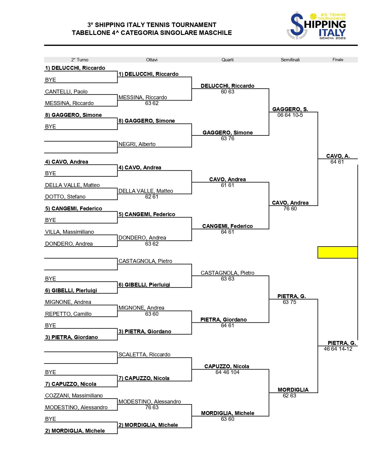 Ora che anche le semifinali del tabellone di quarta categoria sono state disputate, si è delineato il quadro completo dei finalisti che alle ore 18:30 di venerdì (5 settembre) si contenderanno sui campi di Valletta Cambiaso a Genova la terza edizione del SHIPPING ITALY Tennis Tournament.