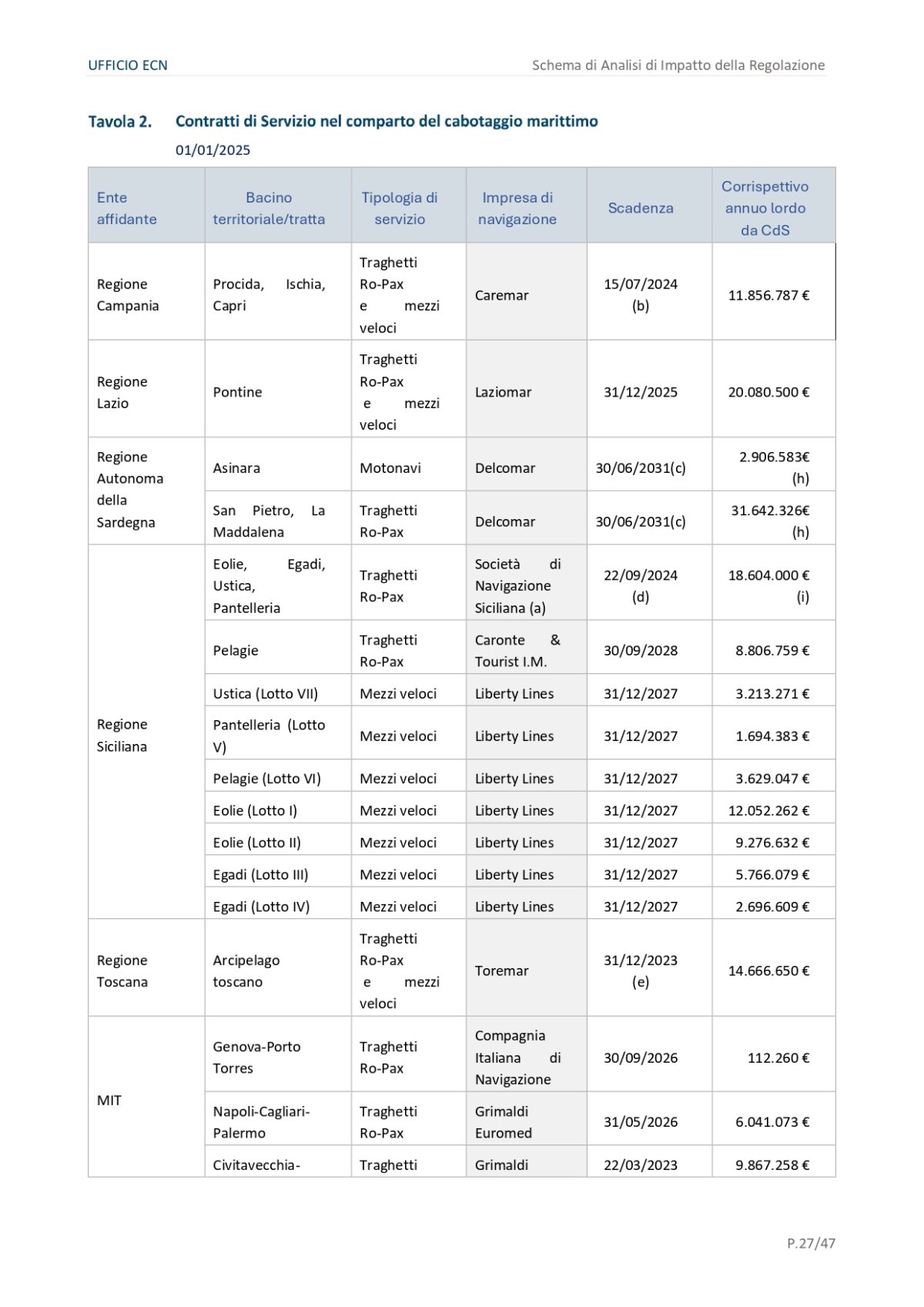 “Individuate alcune criticità nell’ambito delle procedure esperite per l’affidamento dei servizi di collegamento con le isole minori, caratterizzate dalla presenza degli operatori incumbent”