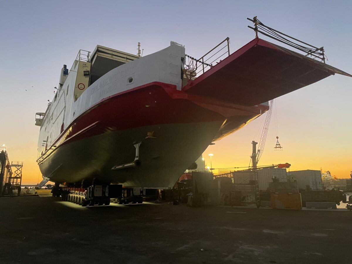 “Grazie alla disponibilità delle nuove aree – è scritto – un potente carrello ha potuto far uscire dal bacino il ro-pax di proprietà della Maregiglio e spostarlo a terra dove inizieranno le operazioni di riammodernamento del salone passeggeri e degli alloggi dell’equipaggio, ma soprattutto l’installazione di nuove tecnologie di navigazione e propulsione: nuova motorizzazione con nuove linee assi, conversione della propulsione e nuovo impianto di abbattimento dei fumi”.