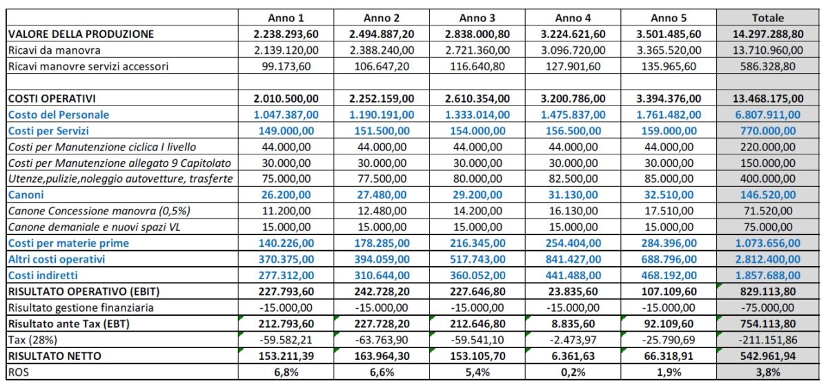 Sul fronte economico i candidati potranno quindi ‘giocare’ sulle tariffe pensate dall’Adsp sulla base del Pef – Piano economico finanziario posto a base di gara, il cui schema di massima riportiamo di seguito, segnalando che la documentazione di gara prevede l’equilibrio anche a valle di un’analisi di sensitività allargata a due scenari peggiorativi rispetto a quello base.