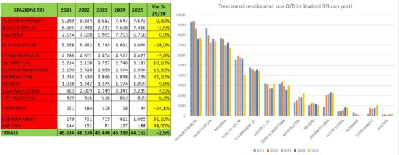 I dati Fermerci-Rfi mostrano treni con origine/destino negli scali italiani in calo anche nel 2025 toccando il livello più basso dell’ultimo quinquennio
