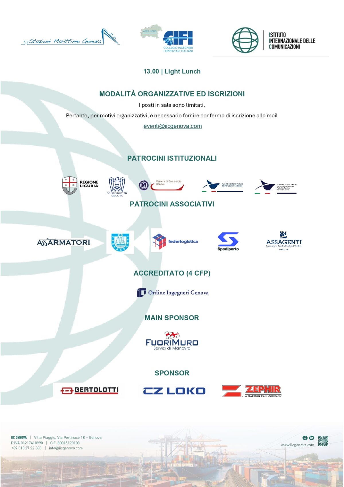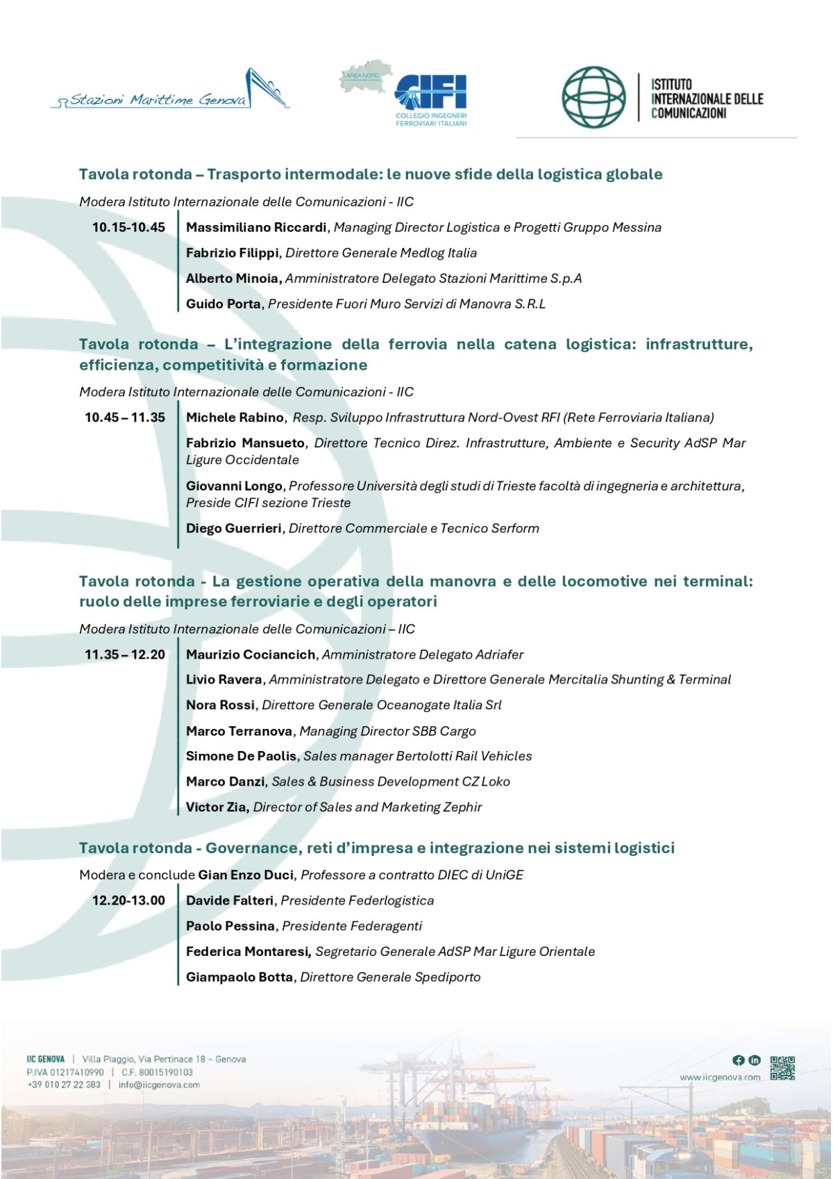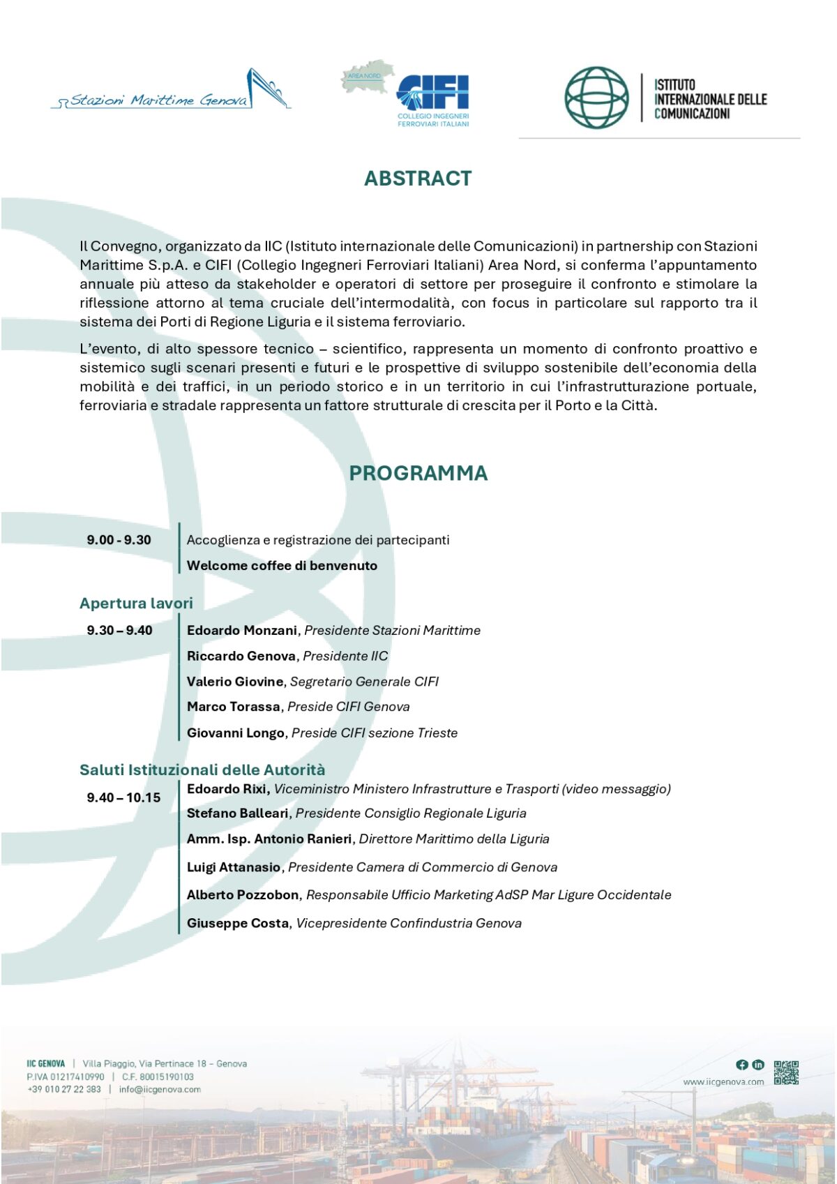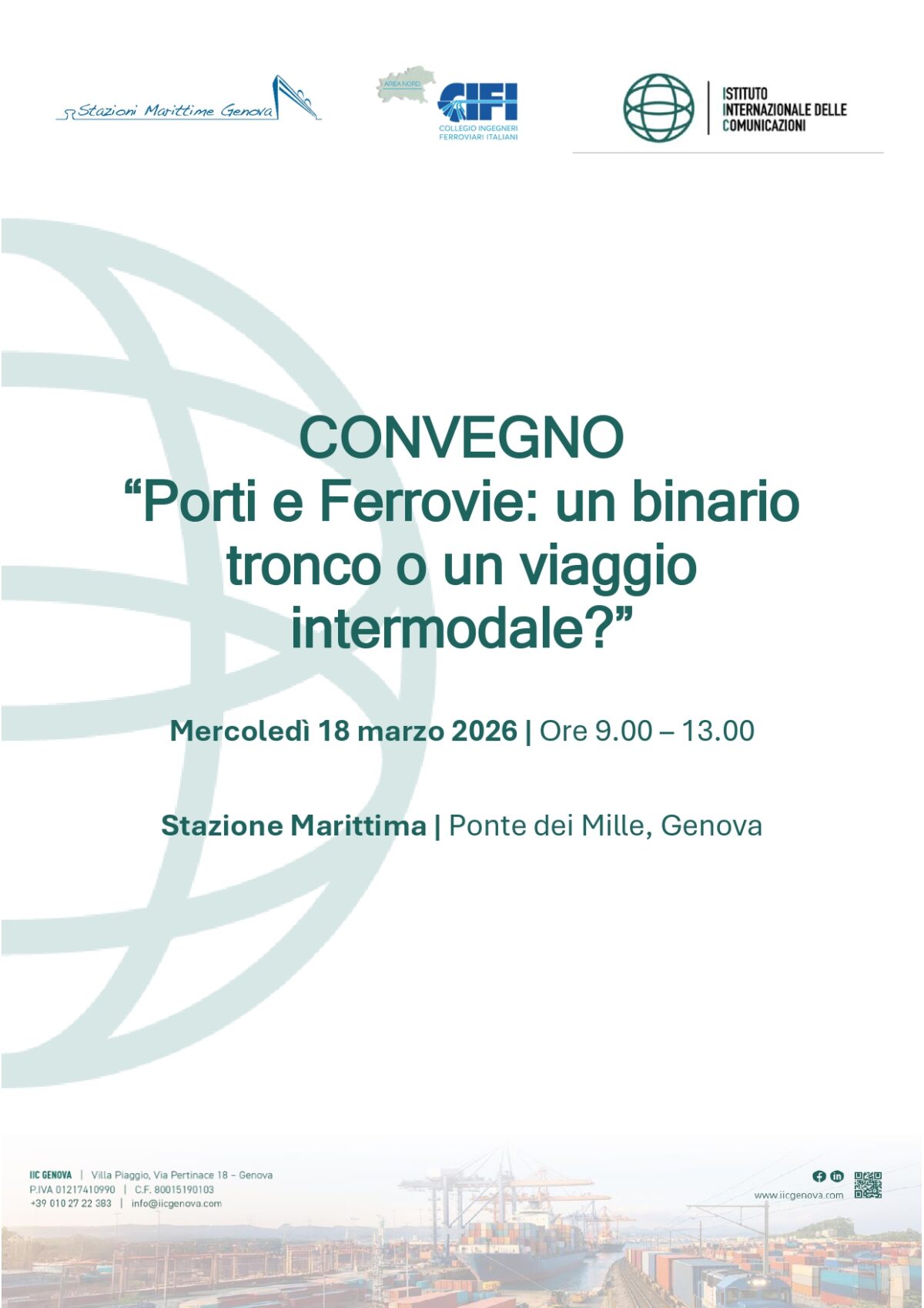 Organizzato da IIC (Istituto internazionale delle Comunicazioni) in partnership con Stazioni Marittime S.p.A. e CIFI (Collegio Ingegneri Ferroviari Italiani) Area Nord